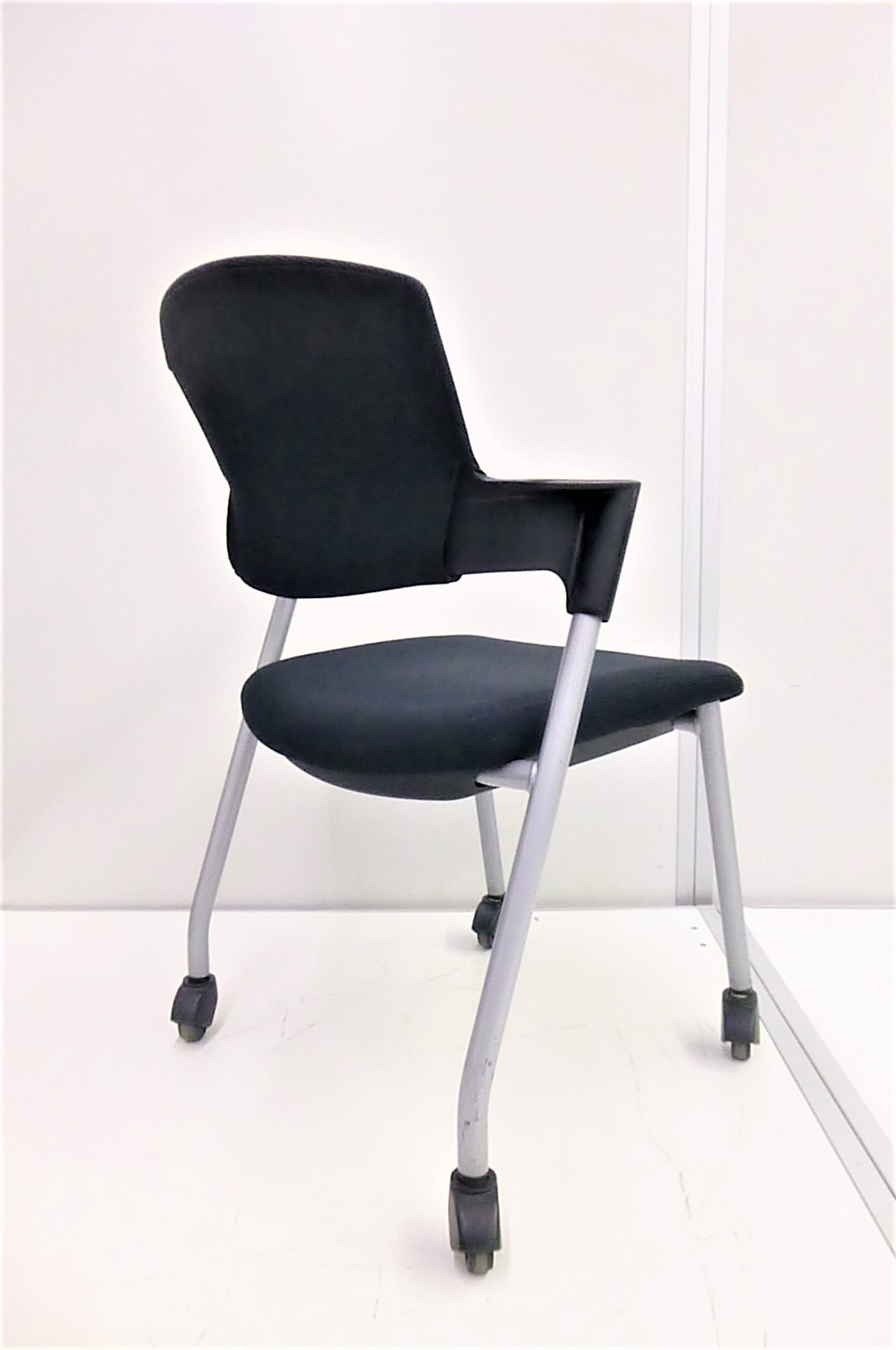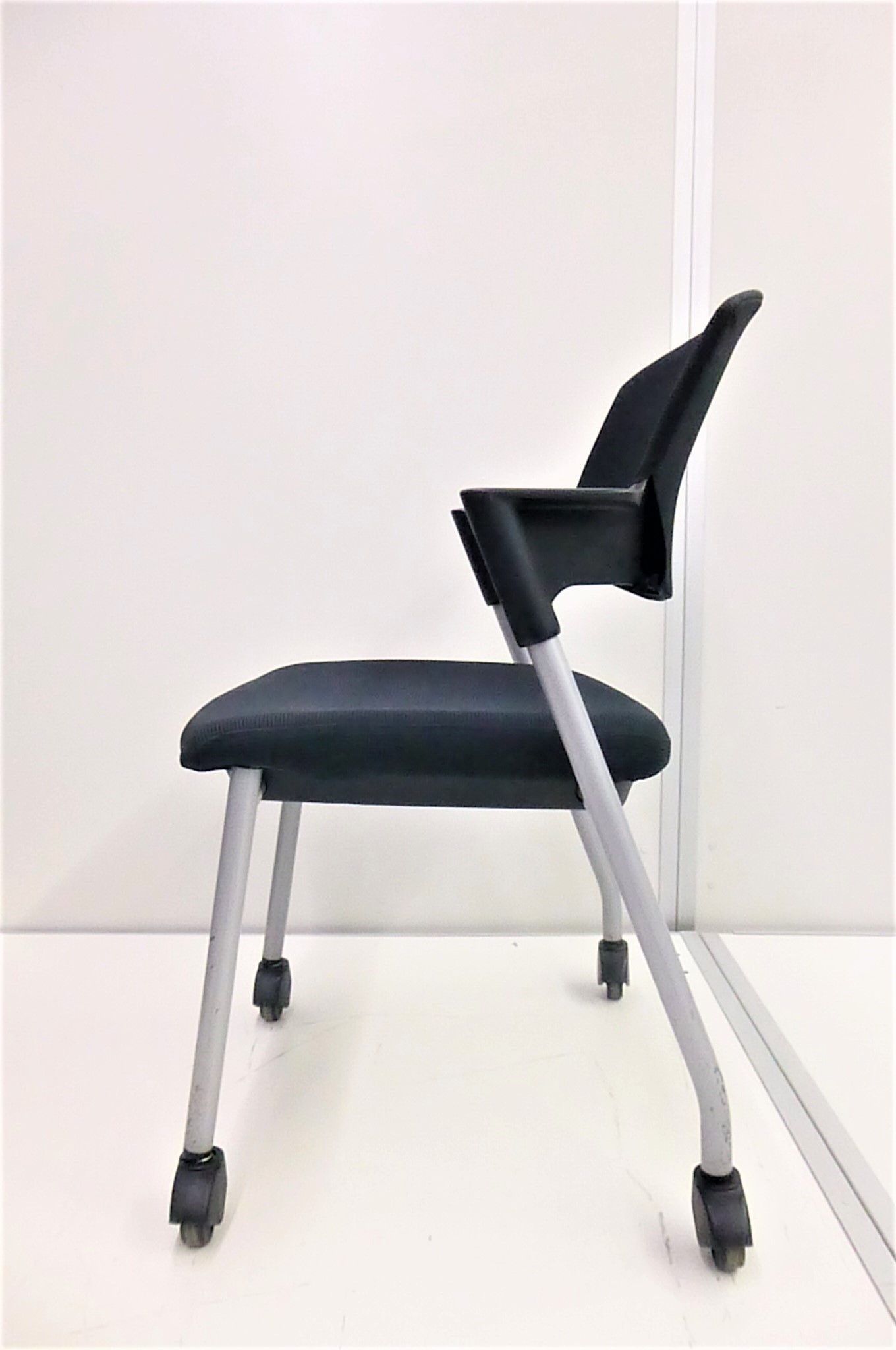 【シンプルスマートなスタッキングチェア!分厚いクッションで長時間でも快適な座り心地!】■スタッキングチェア 肘付ミーティングチェア ■固定肘 ■キャスター付 ■ブラック ■背面樹脂/コクヨ(KOKUYO/プロッティ