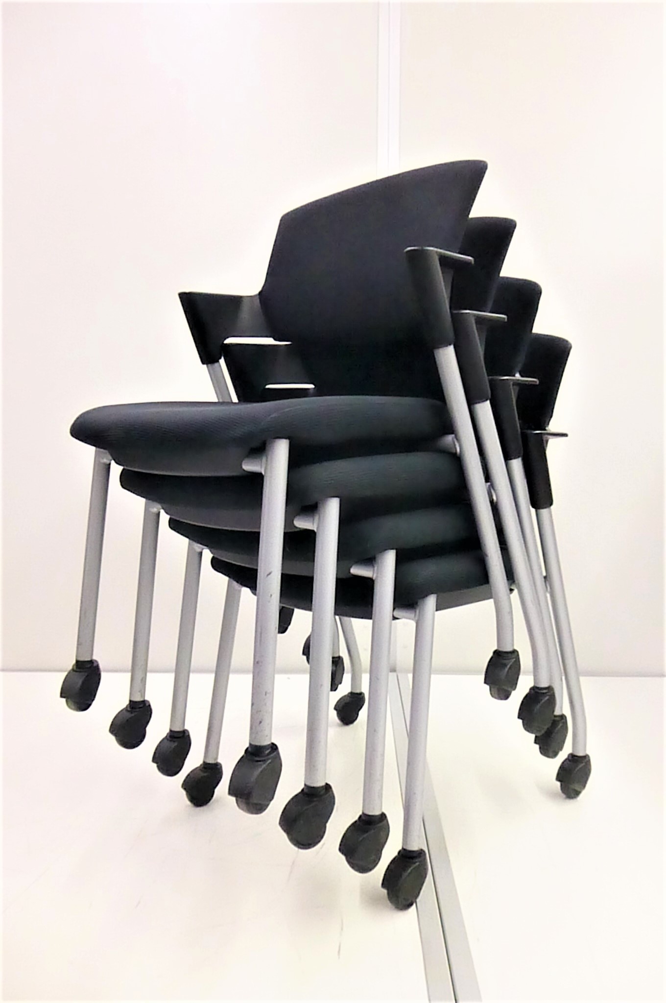 【セット商品(チェア×4脚)】【シンプルスマートなスタッキングチェア!分厚いクッションで長時間でも快適な座り心地!】/オススメ(おすすめ) /人気商品【弊社使用欄:A01037619】■スタッキングチェア 肘付ミーティングチェア ■固定肘 ■キャスター付 ■ブラック ■背面樹脂/コクヨ(KOKUYO/プロッティ