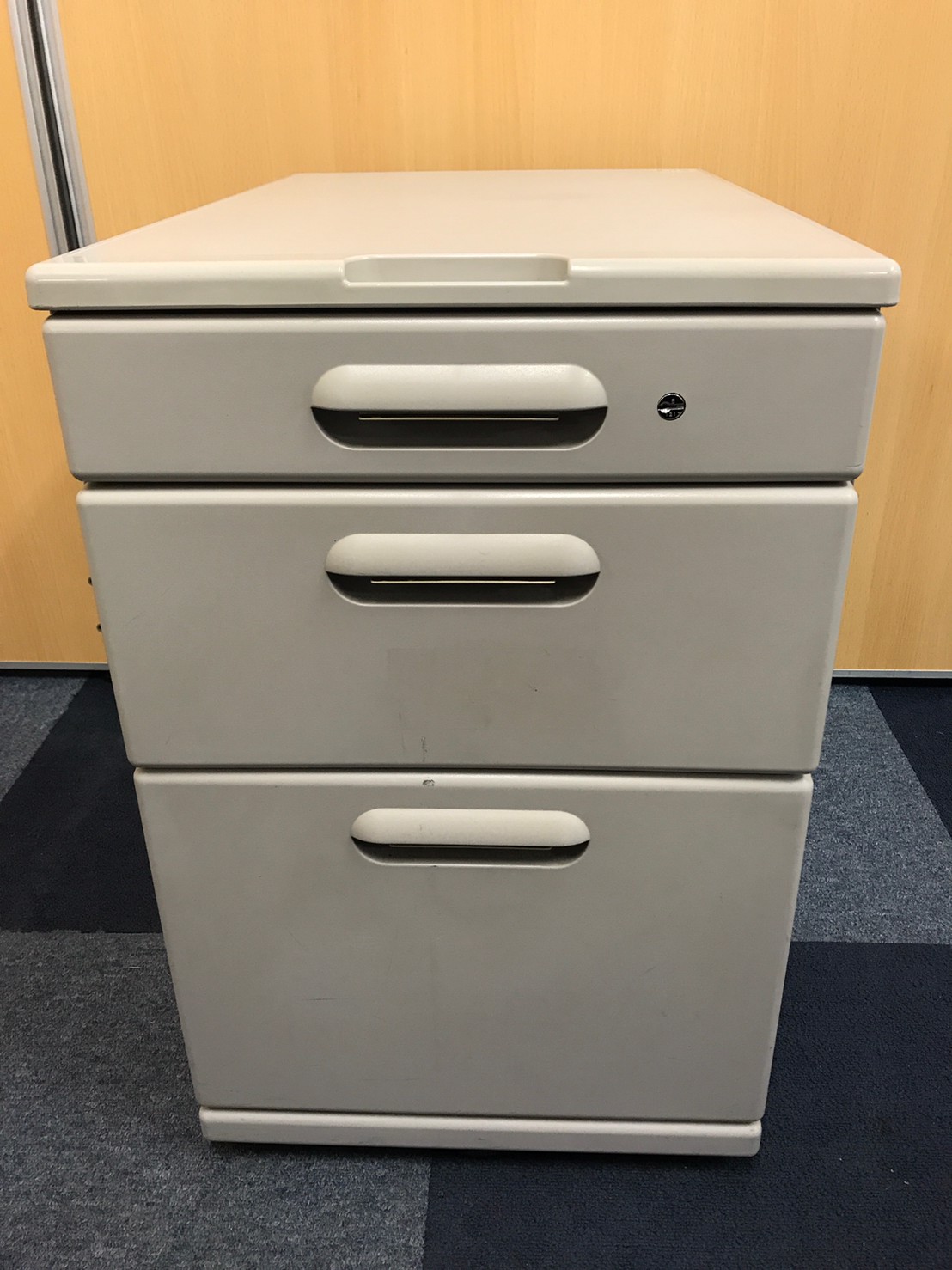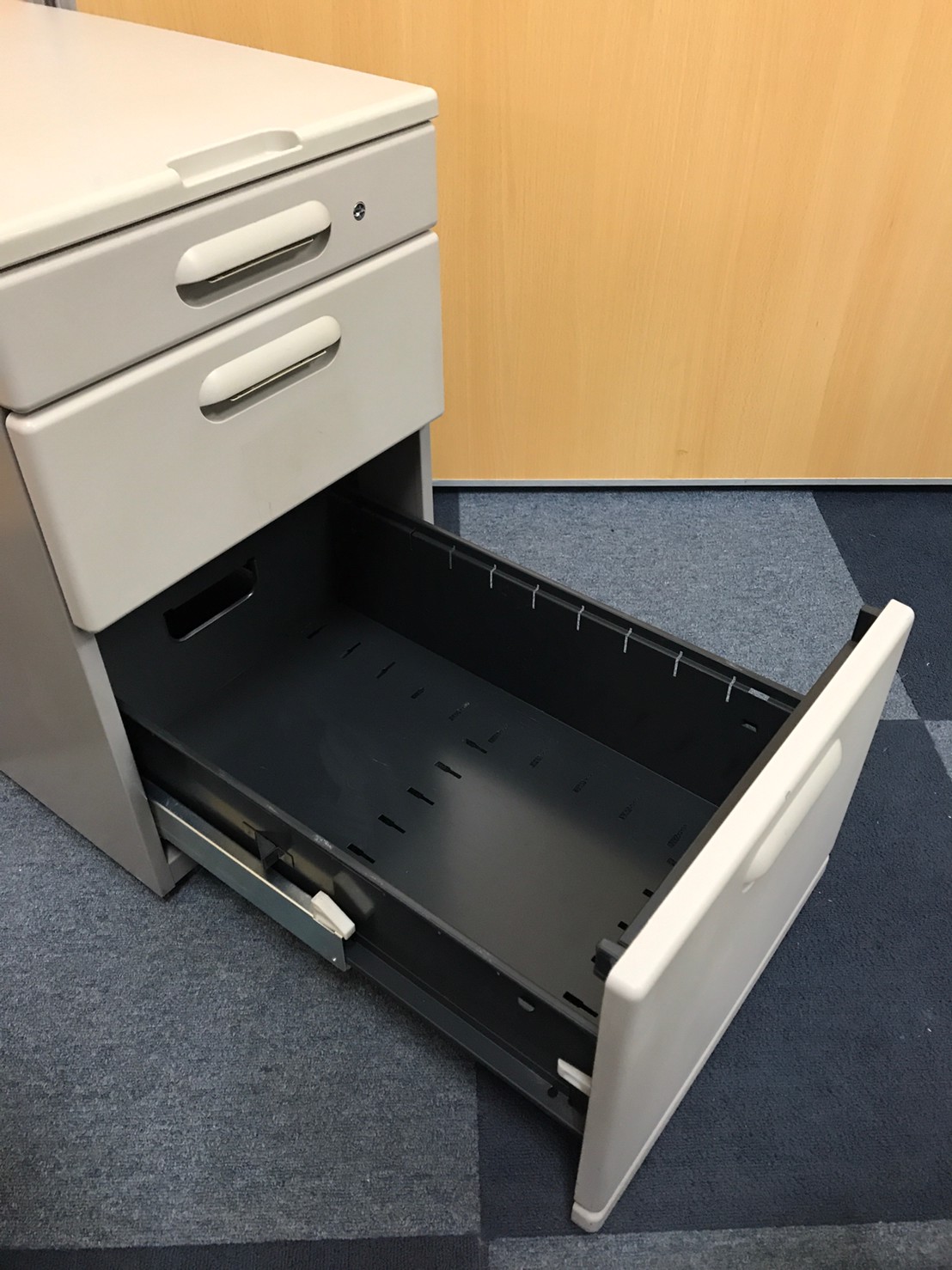 - 一部不具合ありその脇机・ワゴンの本来の効用を果たすための機能以外の一部が使用不可な状態。(例、引出が開閉しづらい、 キャスターロック機能使用不可、ラッチ不良 等がある。)