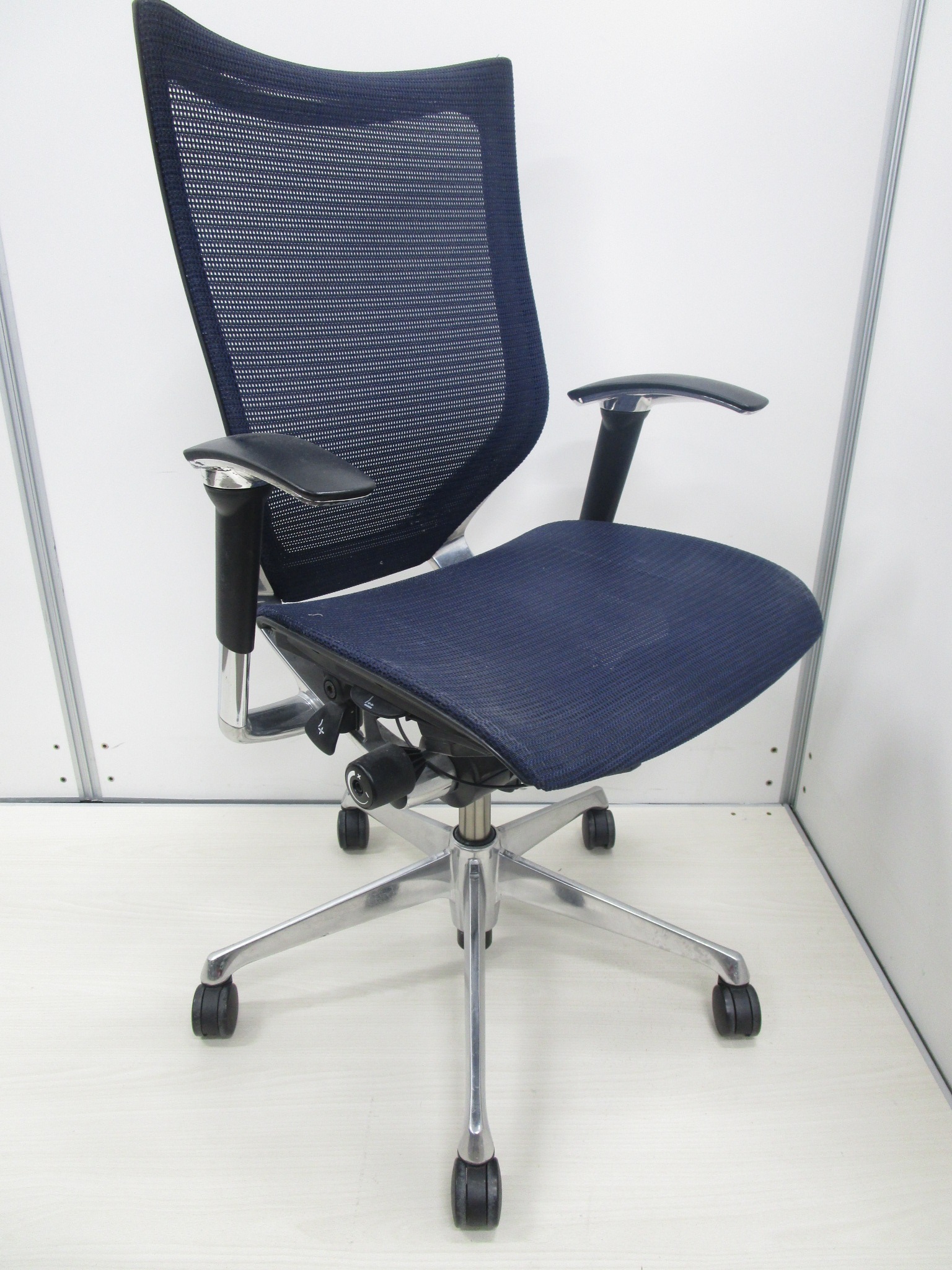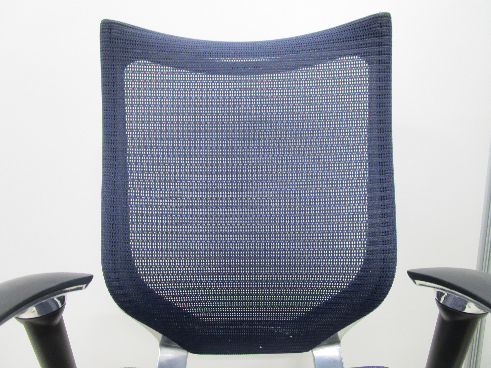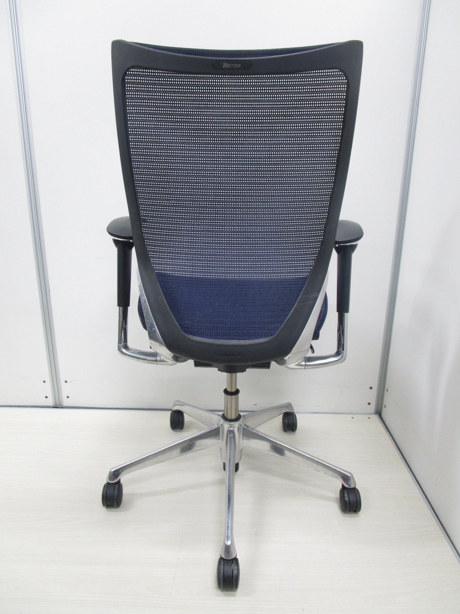 【オフィスの執務室、会議室におすすめ!】■オカムラ(okamura)製 バロン(Baron)チェア 肘付き ハイバック 背面メッシュ ■可動肘 ■ダークブルー × ホワイトシェル【硬めの座面が大人気!国産メッシュチェアの代表格!】【状態良好品!】