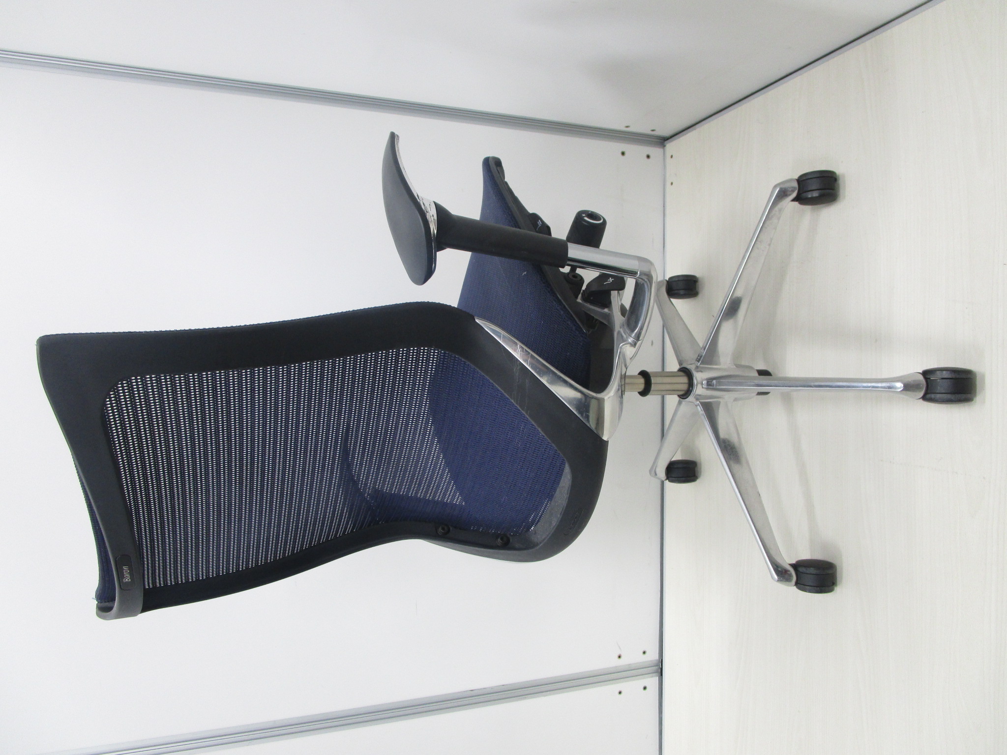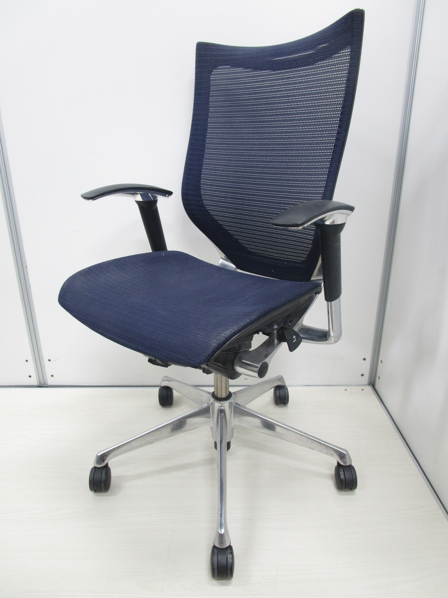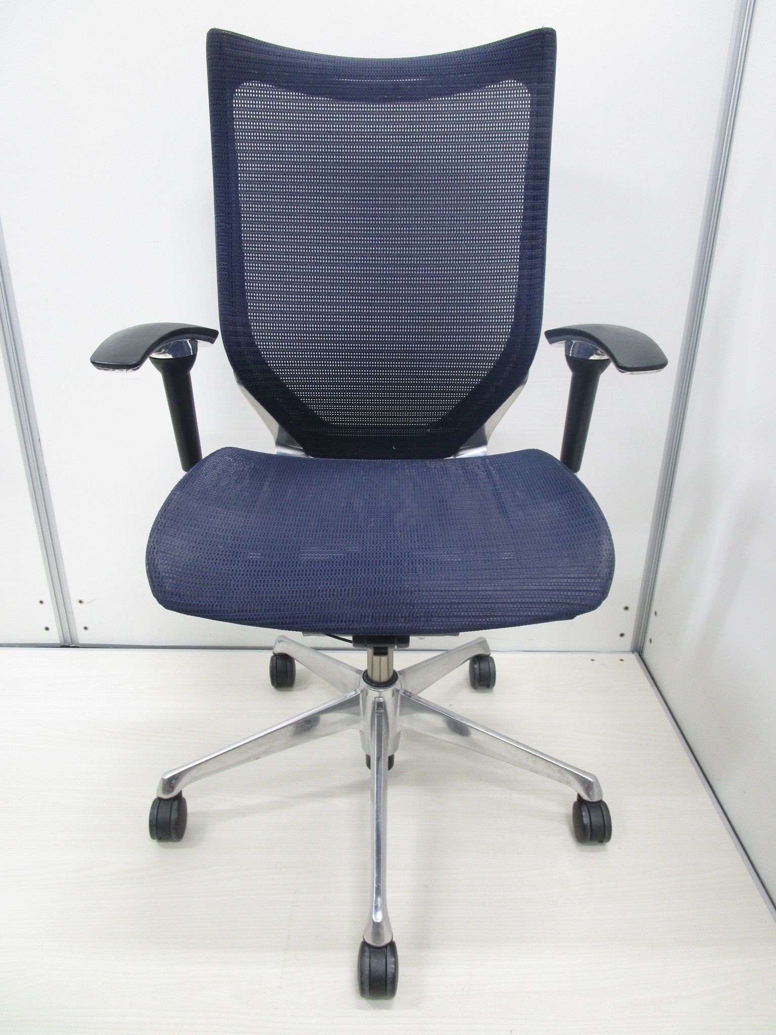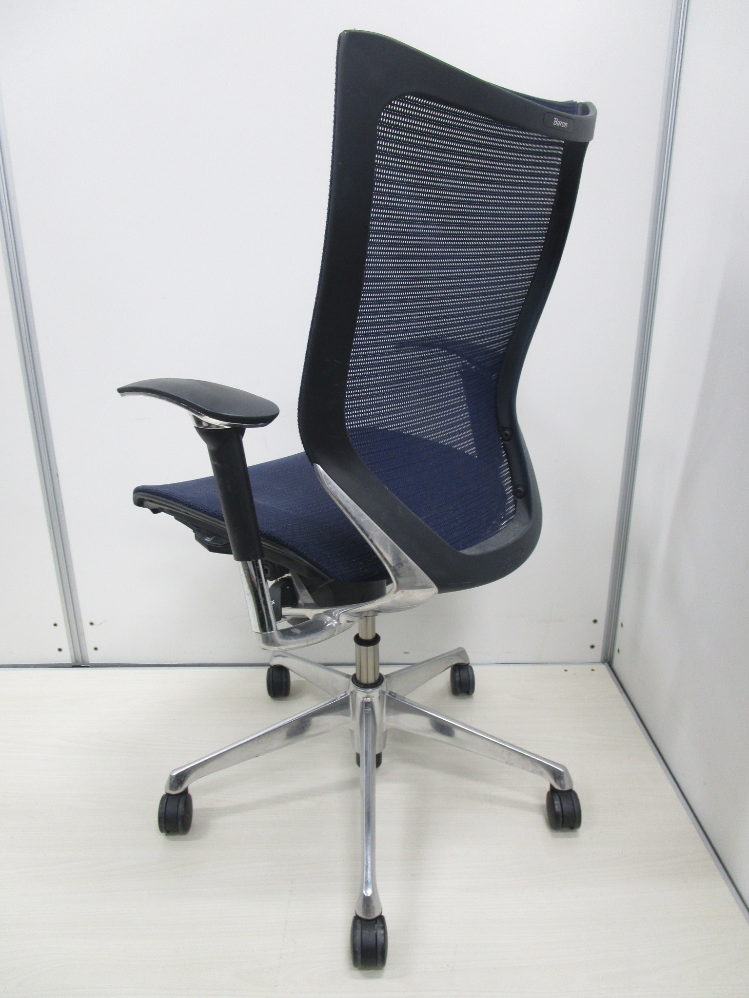 【オフィスの執務室、会議室におすすめ!】■オカムラ(okamura)製 バロン(Baron)チェア 肘付き ハイバック 背面メッシュ ■可動肘 ■ダークブルー × ホワイトシェル【硬めの座面が大人気!国産メッシュチェアの代表格!】【状態良好品!】