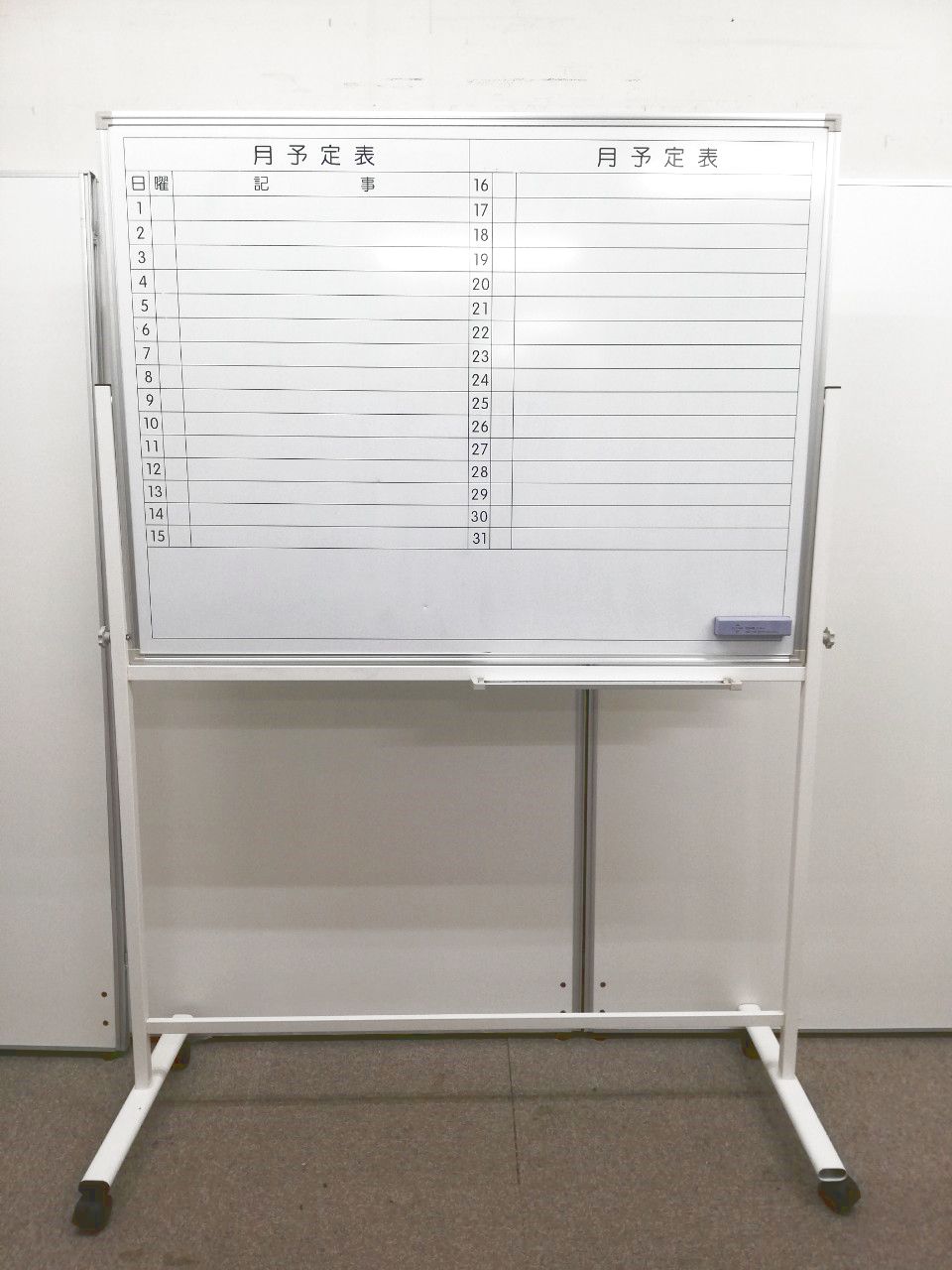 【へこみが有る為お買い得価格!】【自立式のホワイトボード】キャスター付きホワイトボードになります。1カ月の予定表用です。【値下品】- 日本橋店