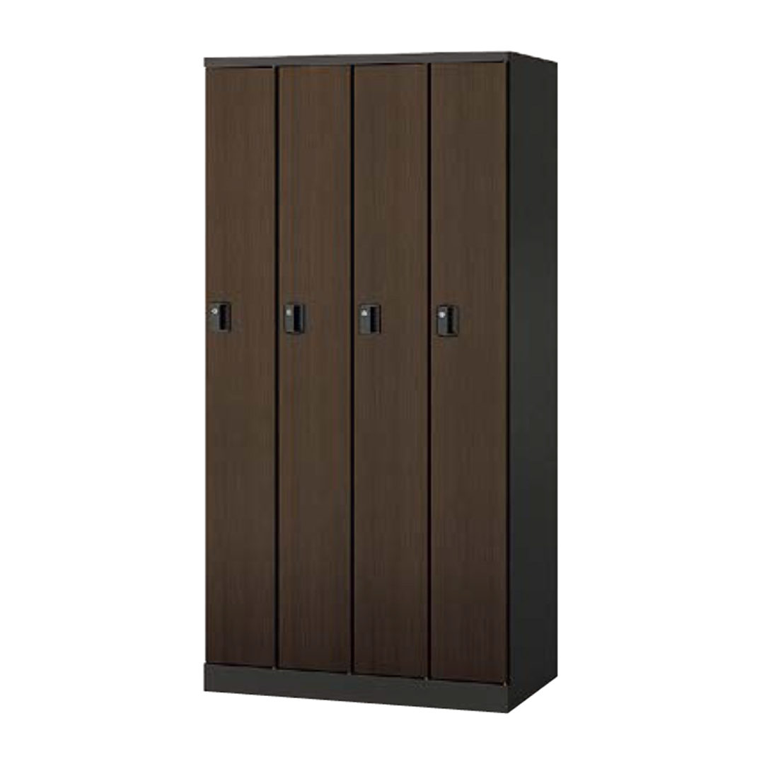 【高級感のある木目柄!】【3点でロックするセキュリティ性】ナイキ4人用ロッカーHLN4S-DW【設置場所にあわせた多機能!】