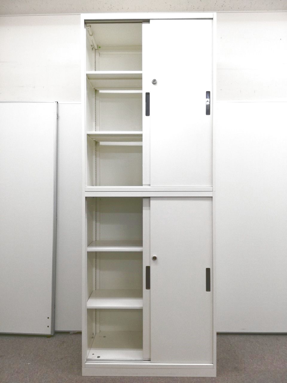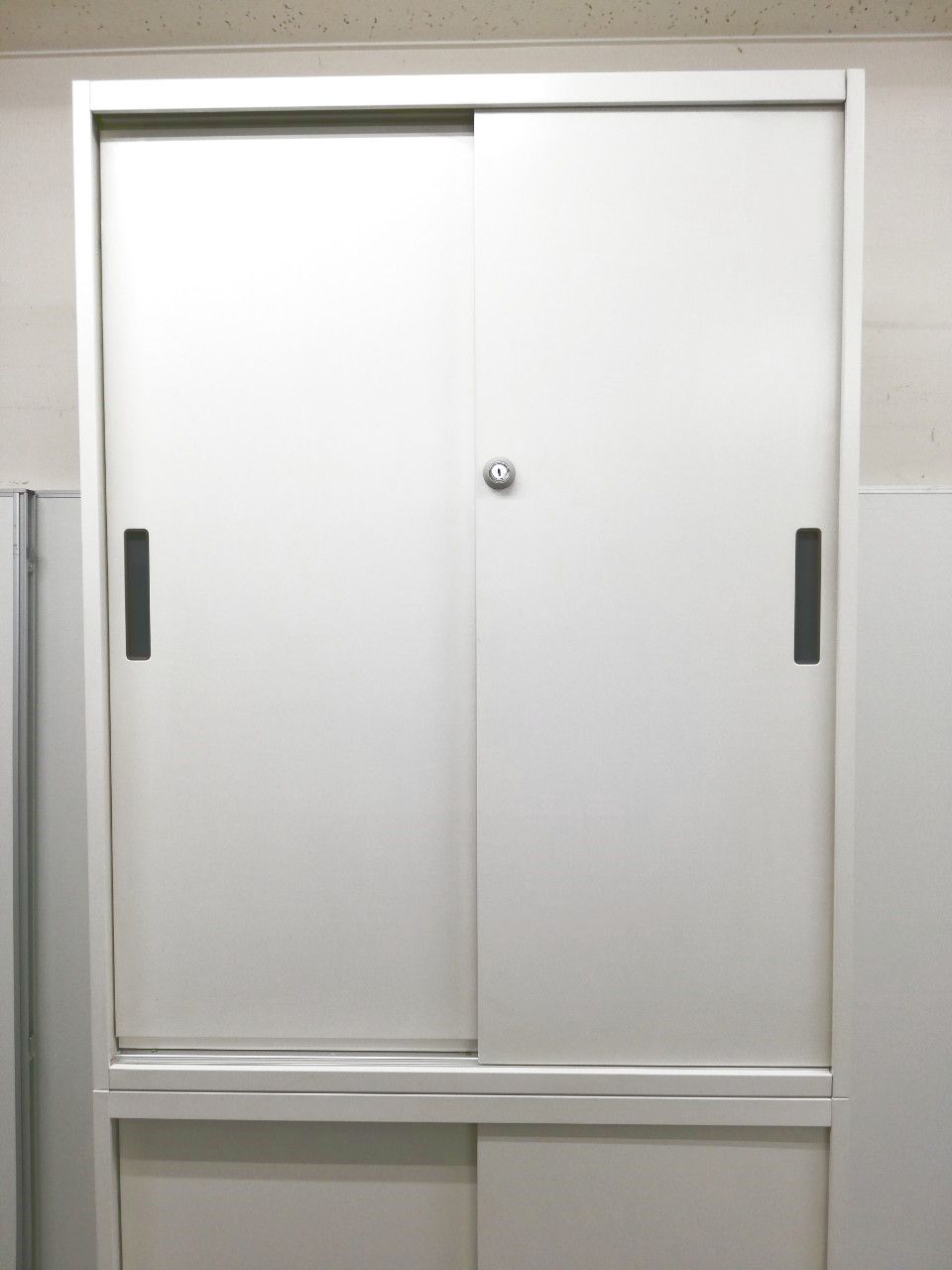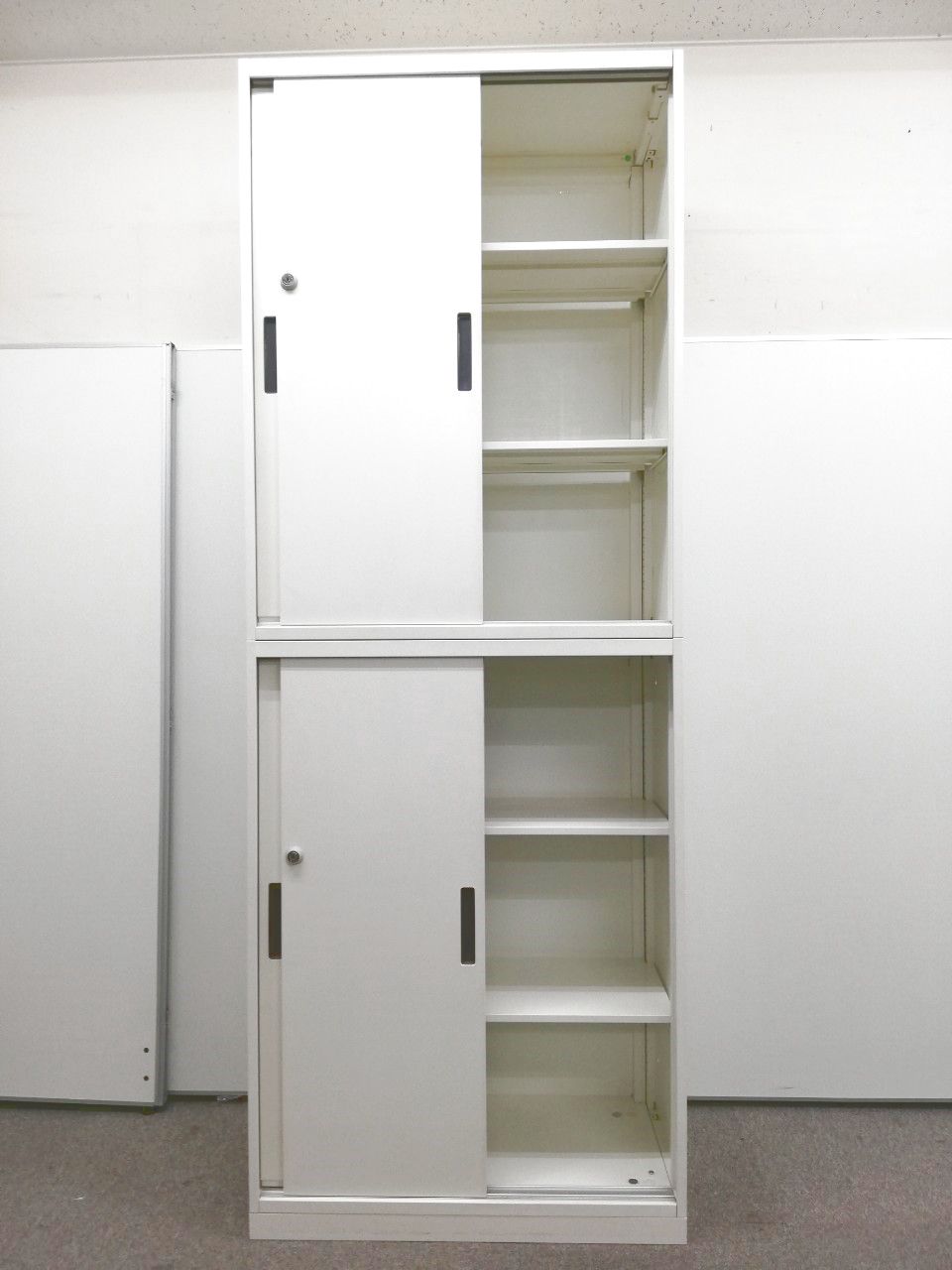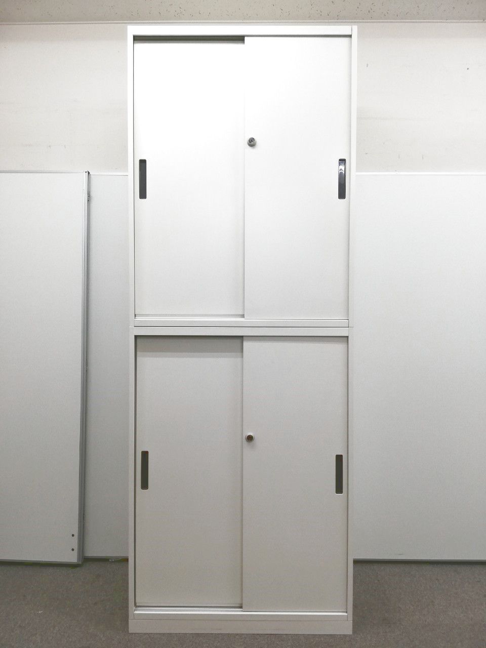 【省スペースでも設置可能】扉の開閉時にスペースを取らない!スライド式の書庫+スライド式の書庫の上下セットになります。【限定1台】【幅800㎜】- 日本橋店