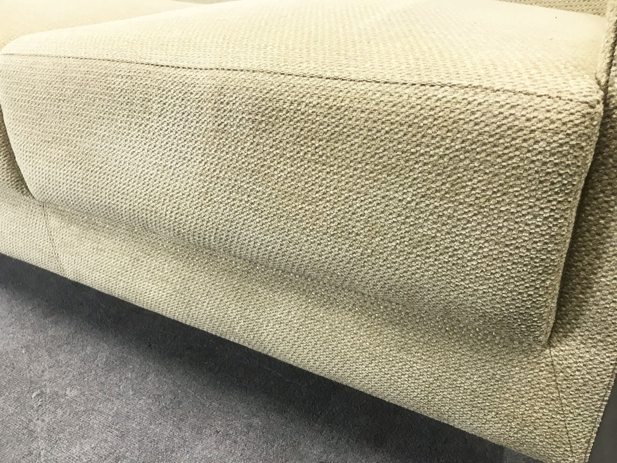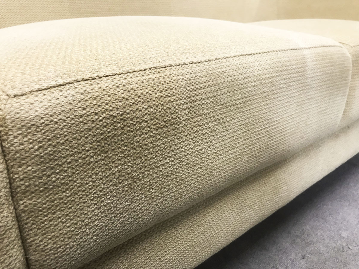 - あり黄ばみ・変色が広い範囲にうっすらある、または濃い黄ばみ・変色が一部ある。(例:三人用ソファ、二人用ソファ、一人用ソファの場合、背もたれ、肘かけ、座面等、 センターテーブルの場合、天板、脚にある。)