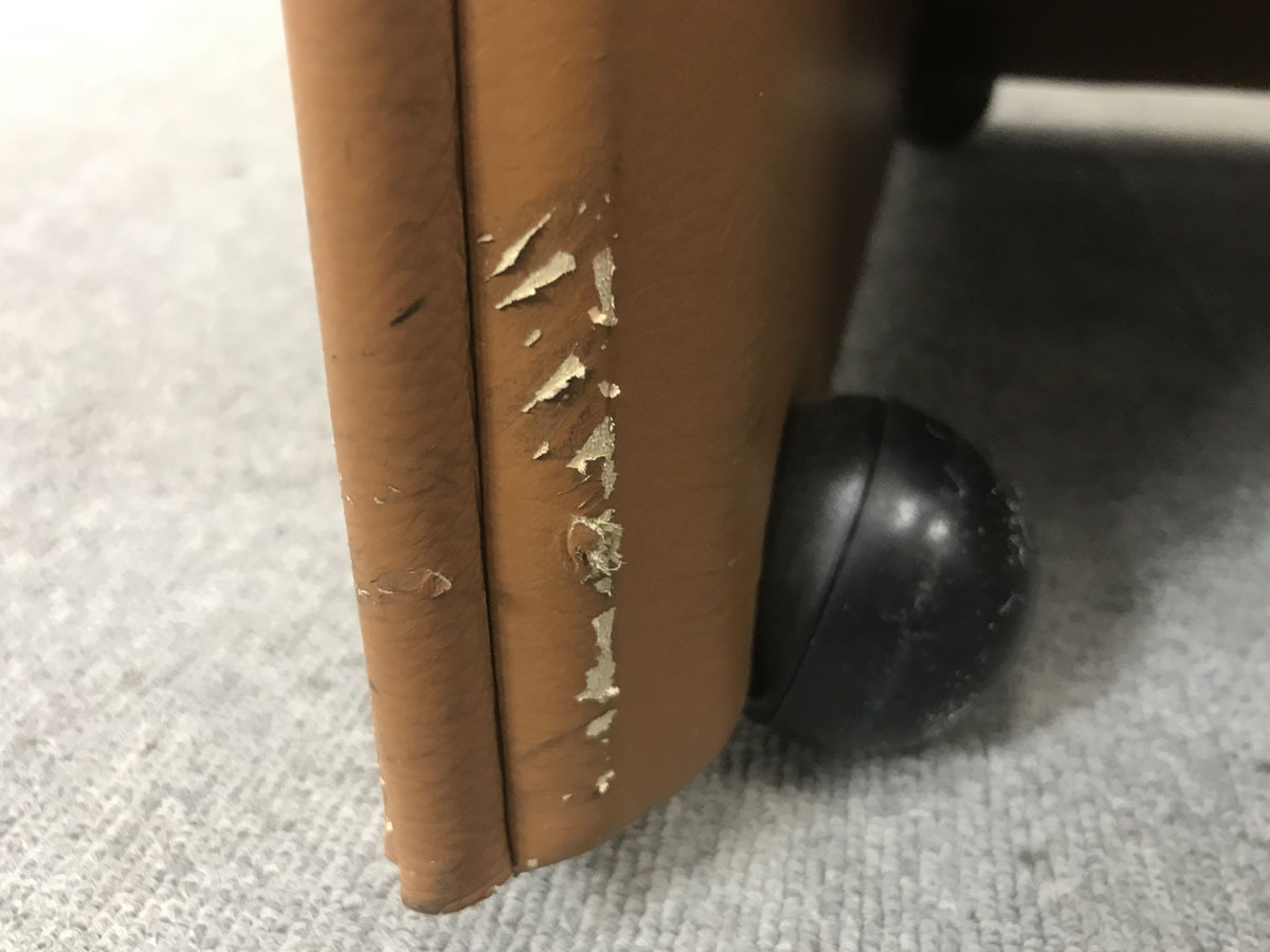 - 目立つ箇所あり傷・破れ・ほつれ・へたり・しわが多数または深い傷・破れ・ほつれ・へたり・しわが一部ある。※座面・背もたれ、シェル、脚部等にある。