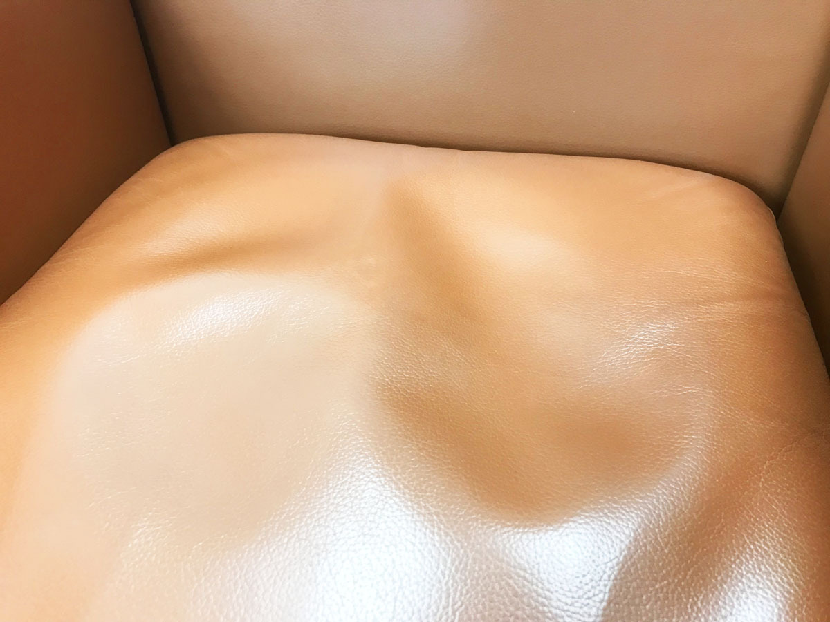 - あり黄ばみ・変色が広い範囲にうっすらある、または濃い黄ばみ・変色が一部ある。(例、座面・背もたれ、脚部等にある。)