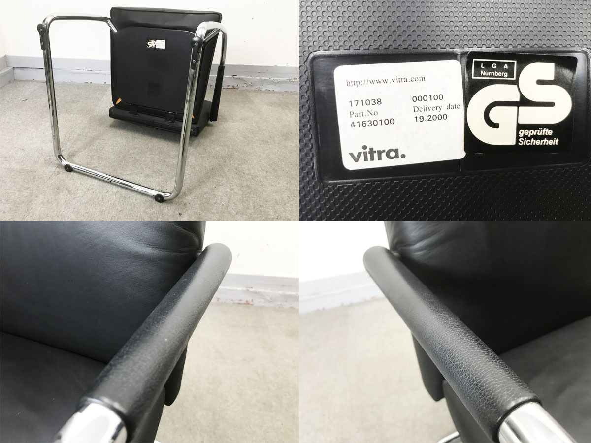 vitra/ヴィトラ ビザソフト カンティレバー ミーティングチェア4脚セット 本革 黒- デザイナーズ家具センター