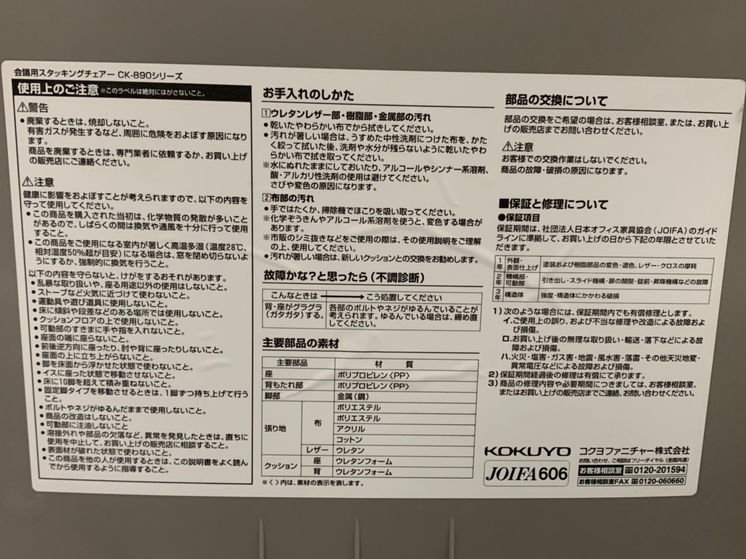 【中古】 CK-S890K コクヨ/KOKUYO スタッキングチェア 252016