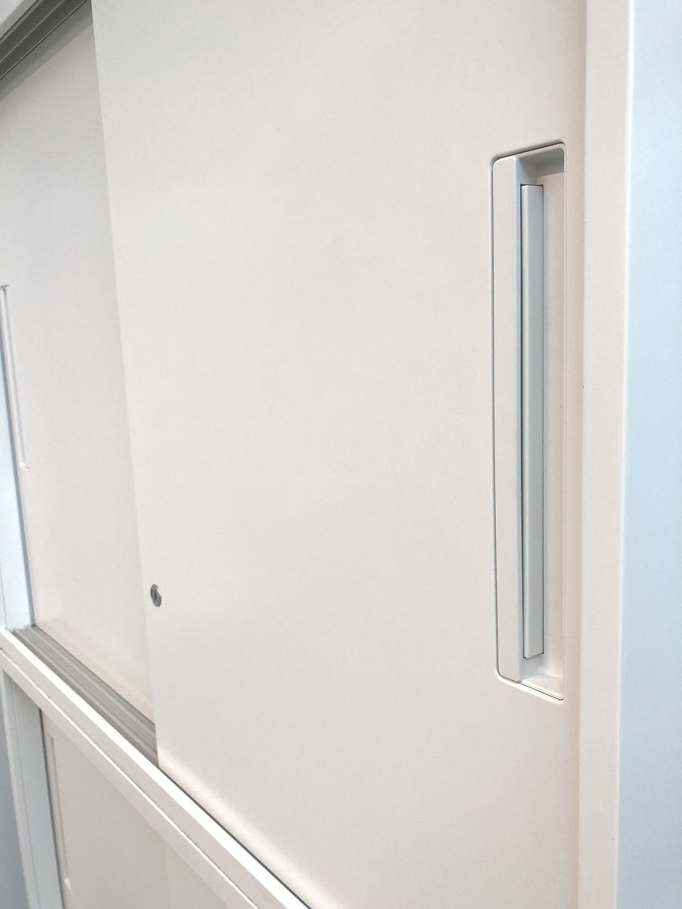 - 扉や引出しに、ラッチ機構を装備。地震時に勝手に扉や引出しが開き、収納物がユニットから飛び出すのを抑制します。