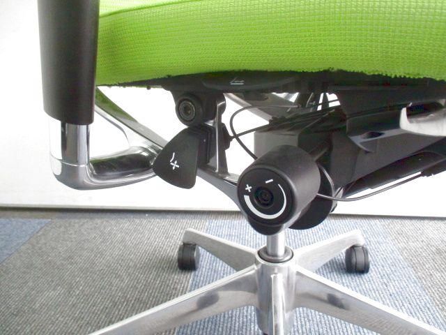 - 座面の右下にあるレバーの操作により座面位置を上下に100mm分調整することが可能です。