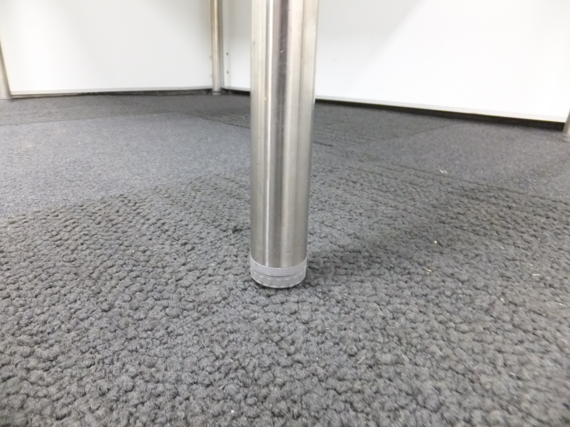 - 一部不具合あり天板歪み、アジャスター無し、キャスター使用不可ようなそのテーブルの本来の効用を果たすための機能以外の一部が使用不可な状態。(例、キャスターロッ ク機能使用不可、棚板無し等がある。)
