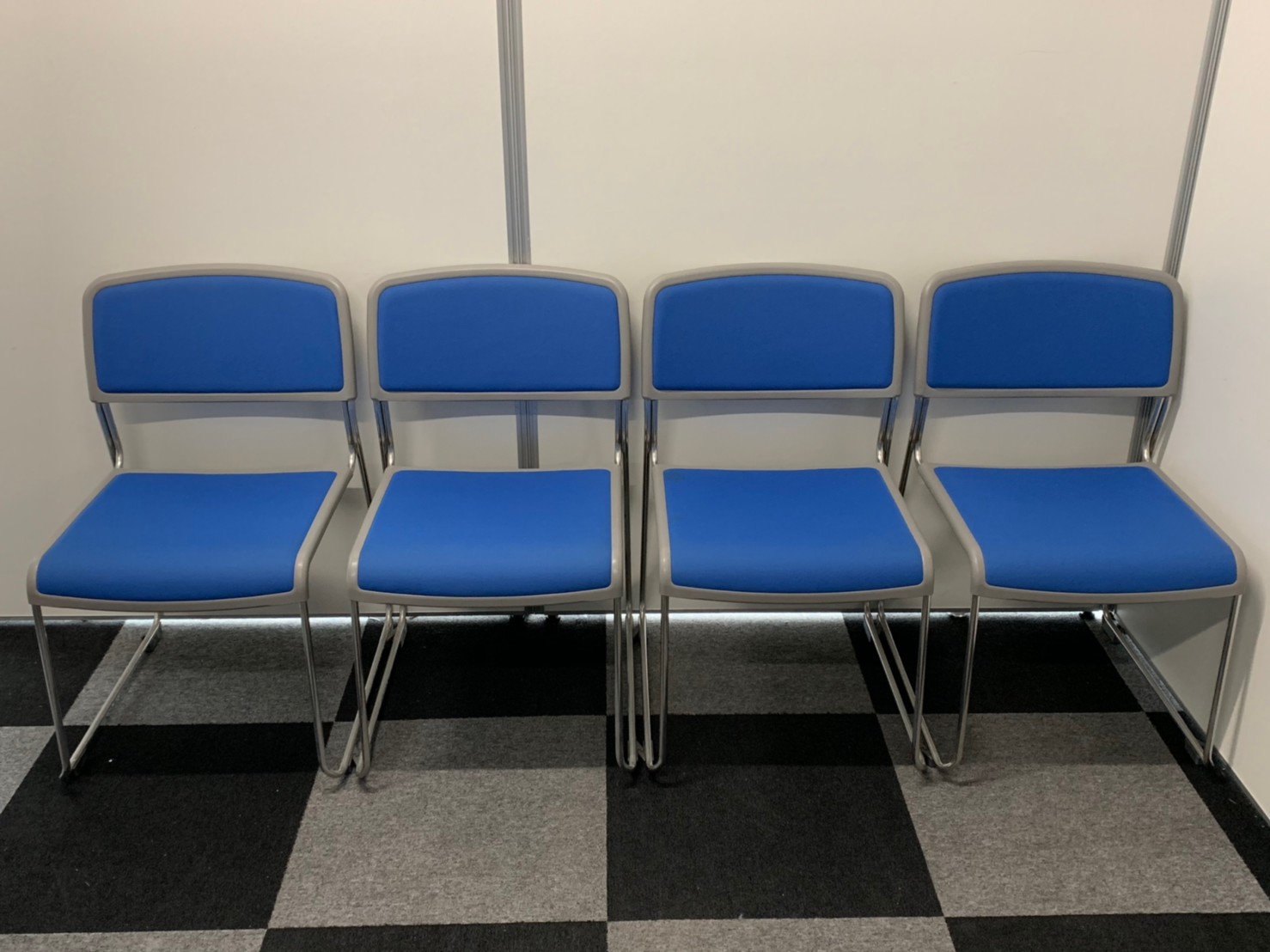【お得な会議用チェア4脚セット!!】人気のブルー!!会議室用のオフィス什器をお探しの方!!- 在庫数
