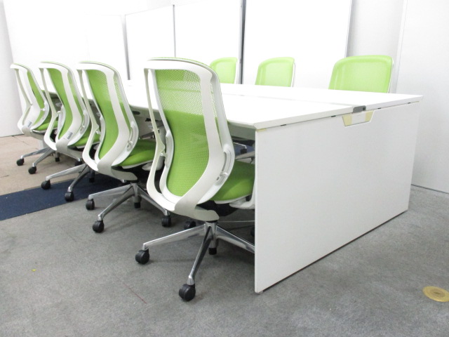 【見た目がおしゃれなフリーアドレスデスク】幅3200㎜ 奥行1400㎜ 高さ720㎜ オカムラ/プロユニットフリーウェイ/天板:ホワイト/脚:ホワイト 中古家具