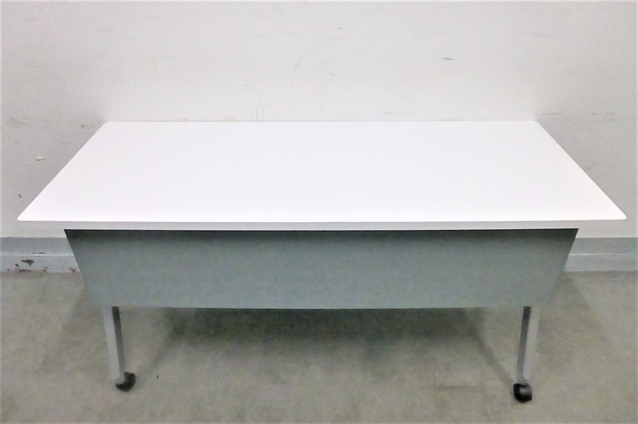【西】オカムラ製 フラプターシリーズ ホワイト W1500/D450/H720サイズ キャスター 平衡収納 会議室・セミナー等に重宝されております! W1500サイドスタックテーブル!!