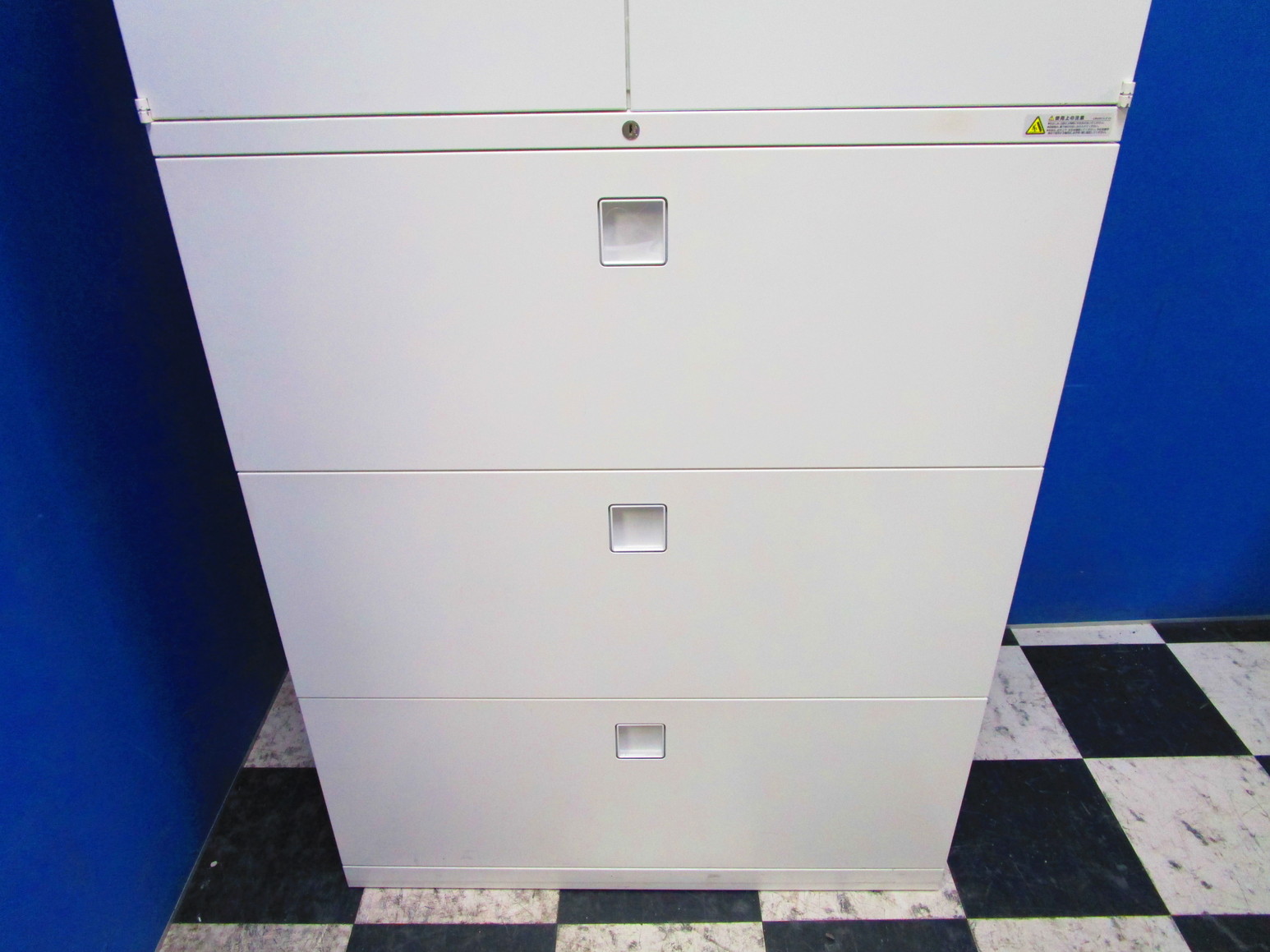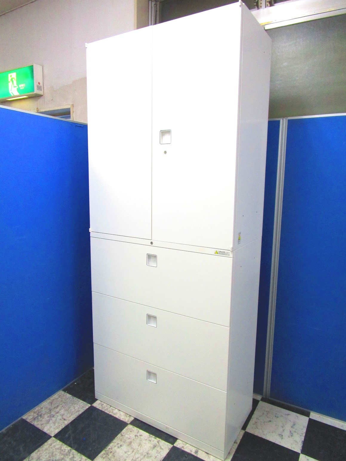 - 一部不具合ありそ引出の開閉不可、施錠不可、棚板無しといったの書庫の本来の効用を果たすための機能以外の一部が使用不可(例、扉、引出の開閉がしづらいなどがある。 )