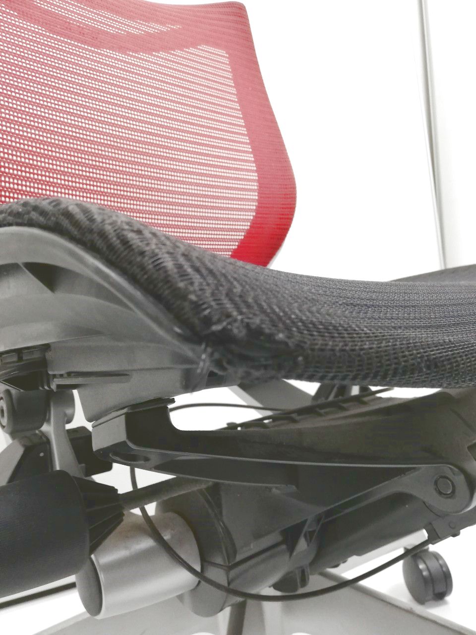 もちろん座り心地もコンテッサの直系ですから快適です。座面の素材はクッションとメッシュの2タイプあります。私、個人的には座面の中心部分でも外側でもテンションが変わらないクッション素材が、足を閉じても開いても快適なので推しです!"