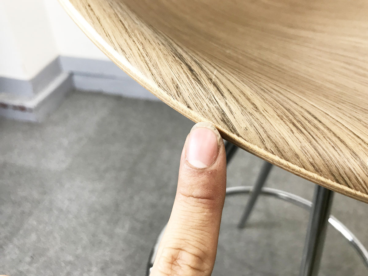 - 目立つ箇所あり傷・破れ・ほつれ・へたり・しわが多数または深い傷・破れ・ほつれ・へたり・しわが一部ある。※座面・背もたれ、シェル、脚部等にある。