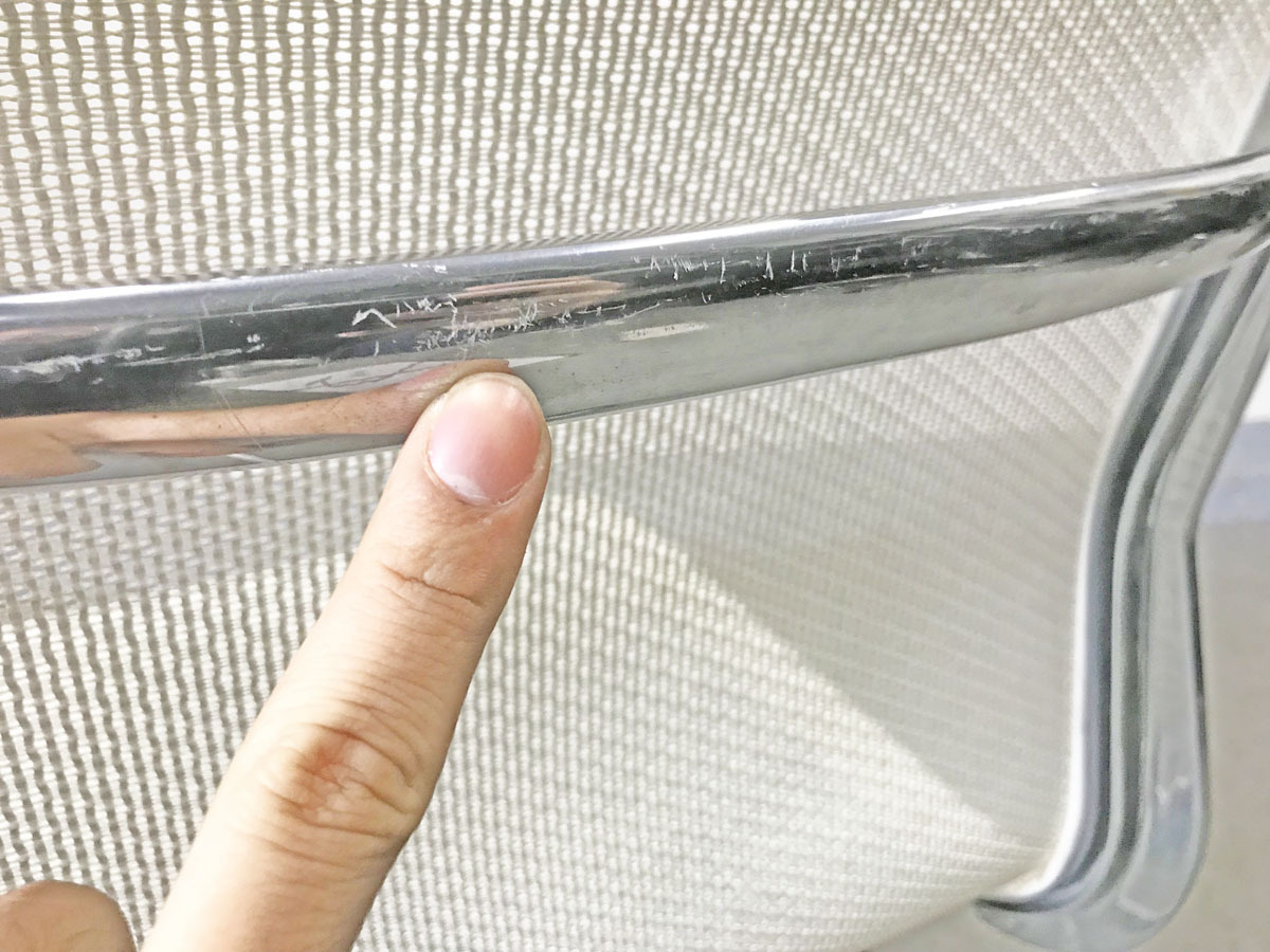- 目立つ箇所あり傷・破れ・ほつれ・へたり・しわが多数または深い傷・破れ・ほつれ・へたり・しわが一部ある。※座面・背もたれ、シェル、脚部等にある。