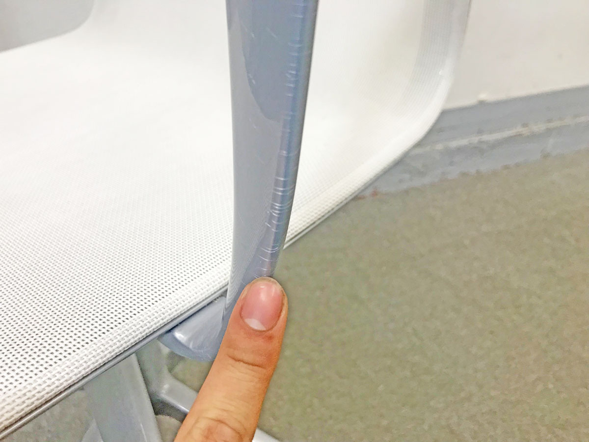 - 目立つ箇所あり傷・破れ・ほつれ・へたり・しわが多数または深い傷・破れ・ほつれ・へたり・しわが一部ある。※座面・背もたれ、シェル、脚部等にある。