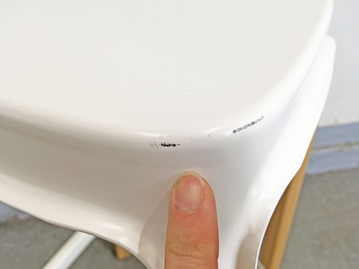 - 目立つ箇所あり傷・破れ・ほつれ・へたり・しわが多数または深い傷・破れ・ほつれ・へたり・しわが一部ある。※座面・背もたれ、シェル、脚部等にある。