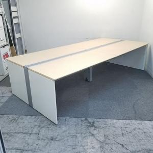 天板がナチュラルカラーで脚がホワイトのパネル脚なので明るいカラーがオフィスに栄えます!