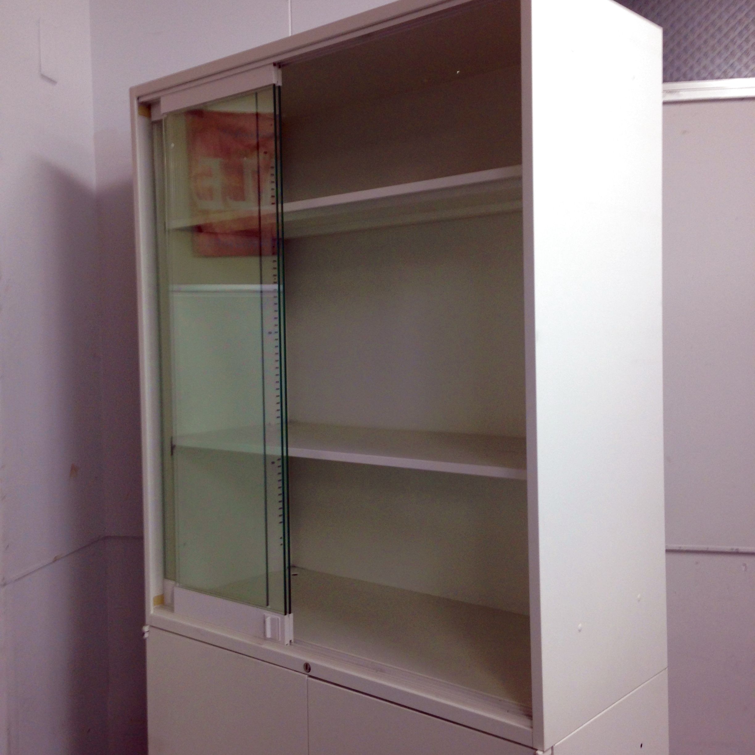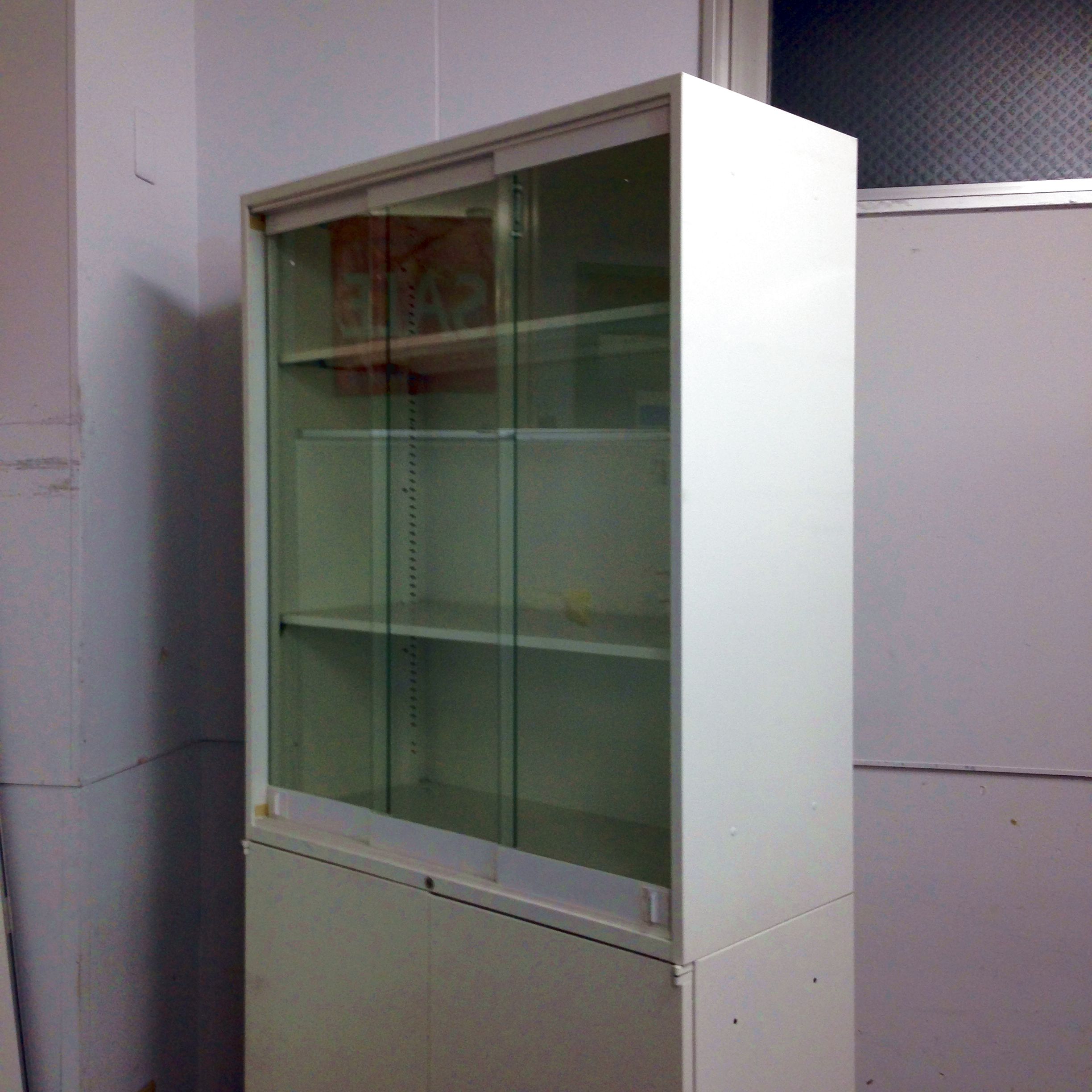激レア!!ガラス3枚引き違い戸(鍵付き!!)+両開き書庫 オカムラ レクトライン(Rectline)- 名古屋千種店