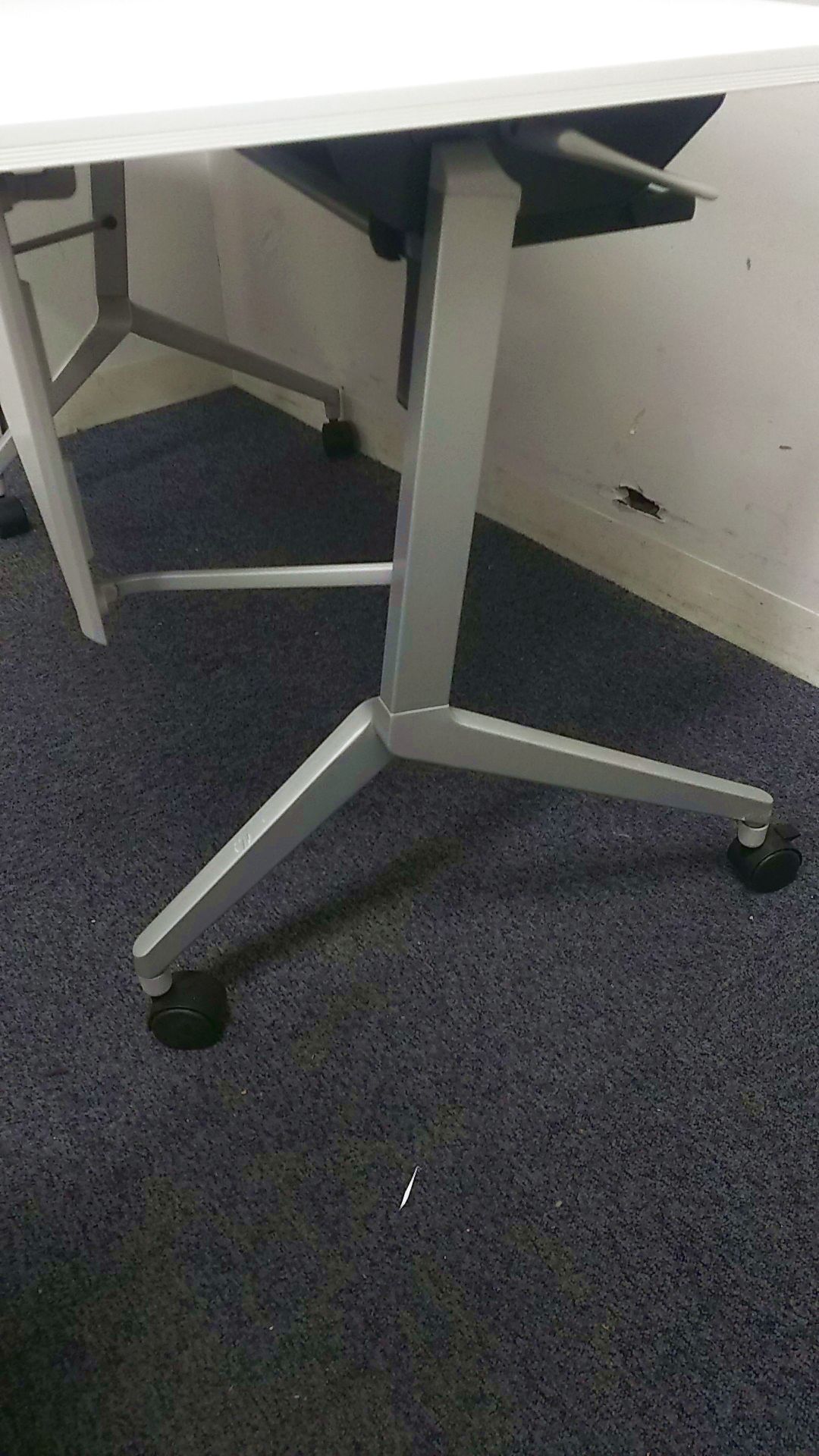 コクヨ製のスタッキングテーブル(折り畳みテーブル)【リーフライン/ホワイト】が値下げされました。 *良品を格安で!「オフィスバスターズ福岡南店」は、福岡を拠点として、全国へ中古オフィス用品・オフィス家具を提供しております。/ 天神