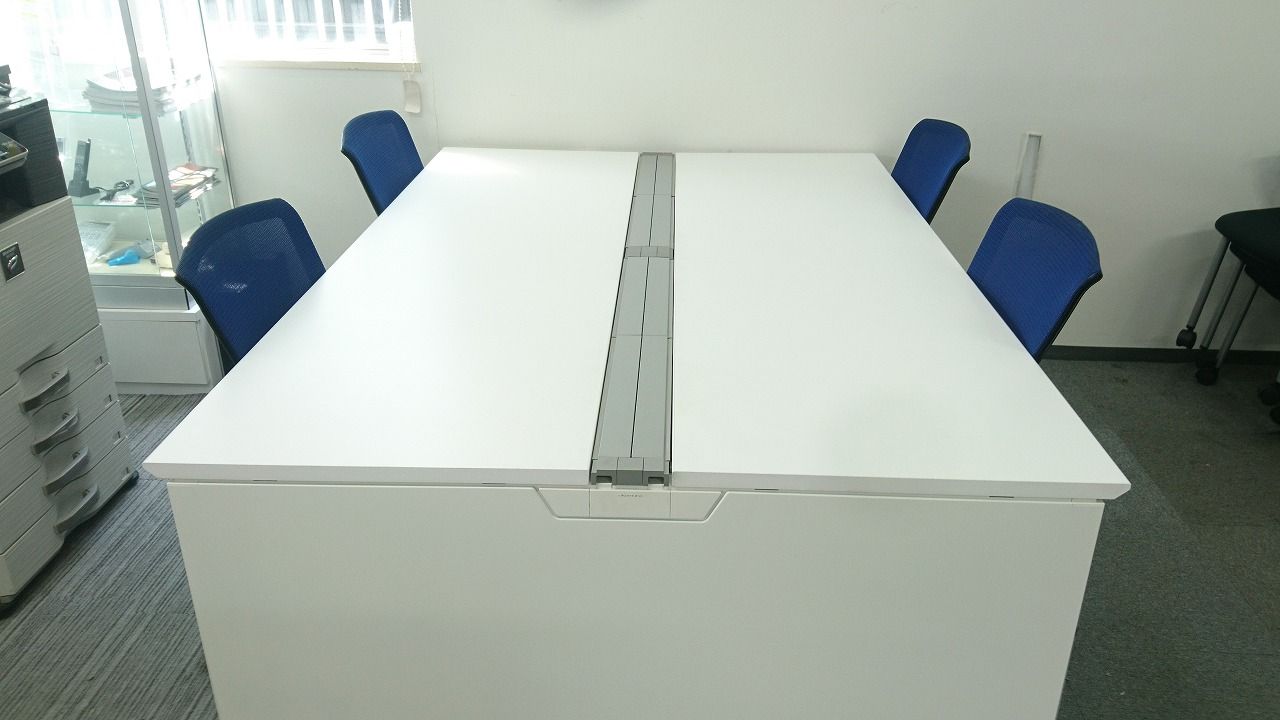 W2000サイズ/4名使用想定/フリーアドレスデスク/オカムラ製/フリーウェイシリーズ/ホワイト/エンド脚ホワト/中古/安い/福岡/博多/天神/ABW