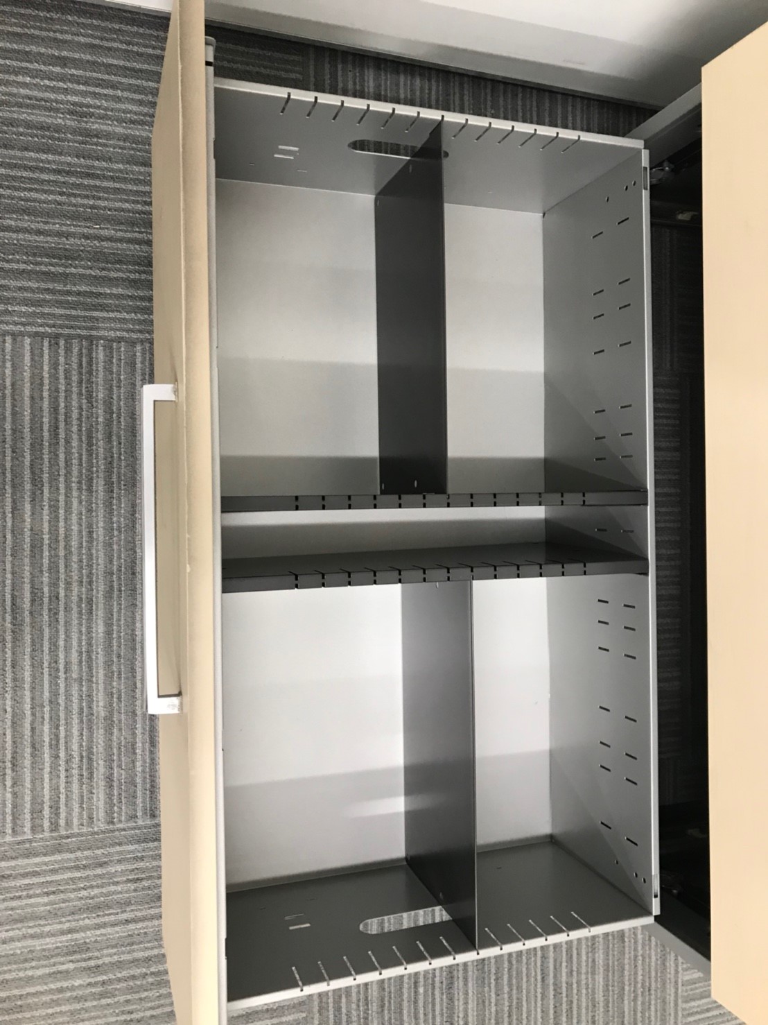- 一部不具合ありそ引出の開閉不可、施錠不可、棚板無しといったの書庫の本来の効用を果たすための機能以外の一部が使用不可(例、扉、引出の開閉がしづらいなどがある。 )