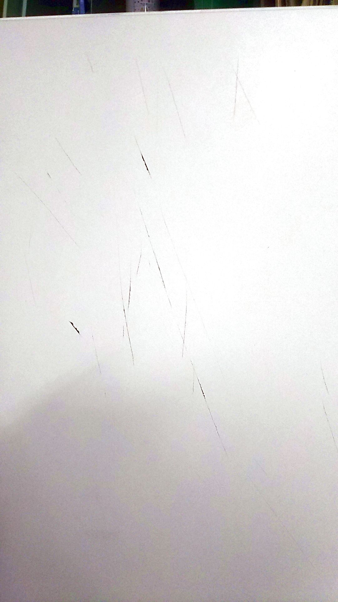- あり黄ばみ・変色が広い範囲にうっすらある、または濃い黄ばみ・変色が一部ある。(例、天板、幕板、棚板、サイド部分、脚部等にある。)