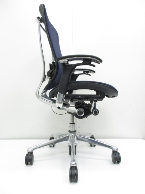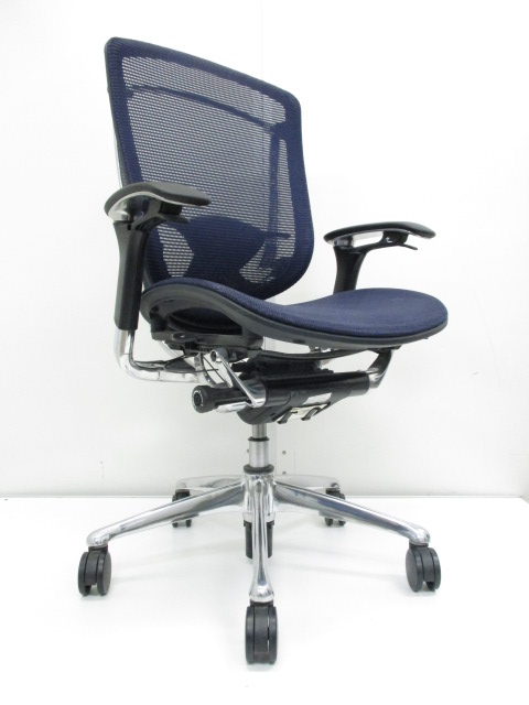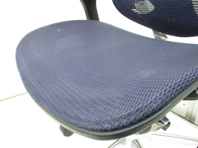 【オカムラ製の最高級チェアが残り1脚限りです!!】オフィスバスターズ 東大阪店 オカムラ製 コンテッサ シリーズ ダークブルー アジャストアーム※可動肘 背/座面メッシュ ランバー 世界で認められた革新的タスクチェア!人間工学に基づいた快適な座り心地を実現! 肘付きハイバックチェア!! 中古 外部倉庫品