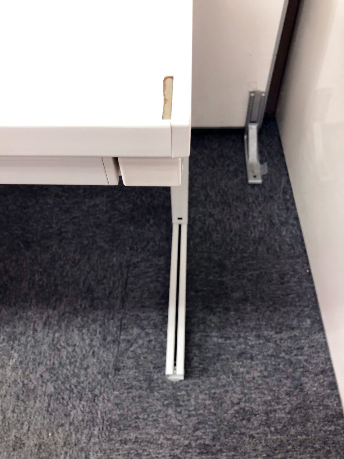 - 机の角がシャープなので、隣り合うデスクがフラットにつながります。すっきりとしたデザインです。