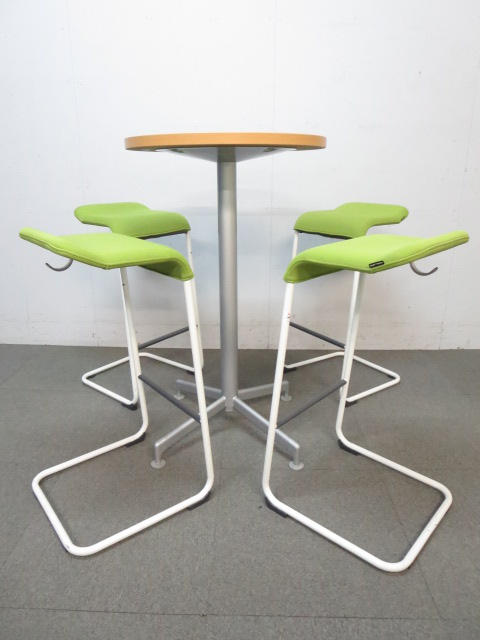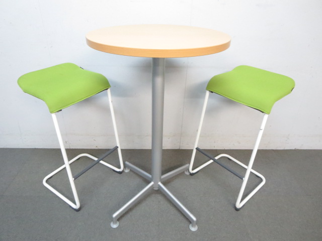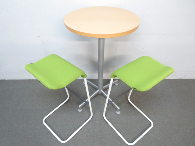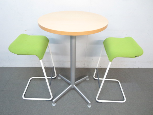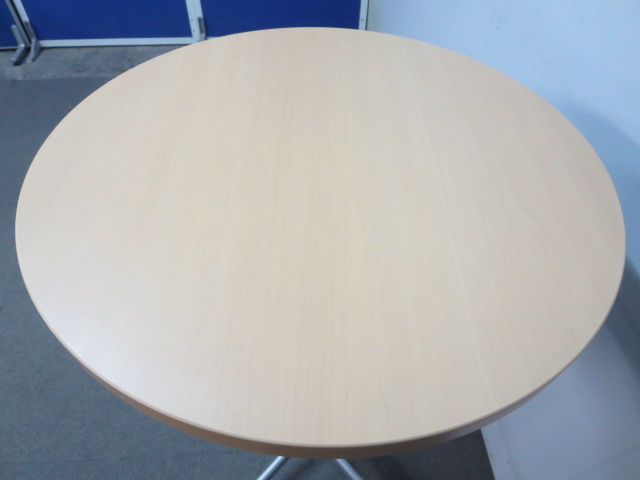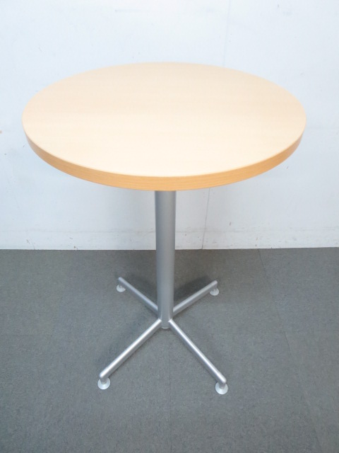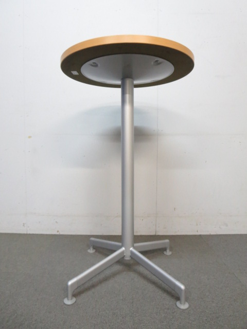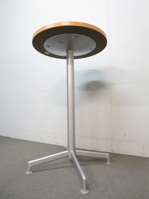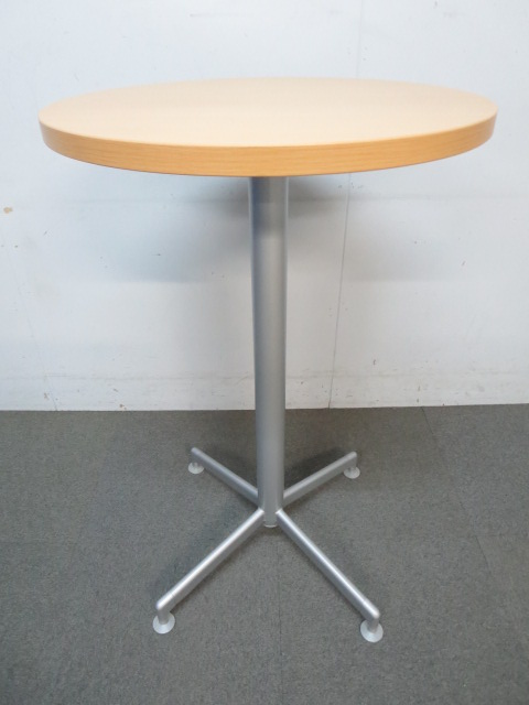 【リフレッシュスペースに最適!】■コクヨ製 丸型ハイテーブル 木目柄ナチュラルカラー- 川崎店