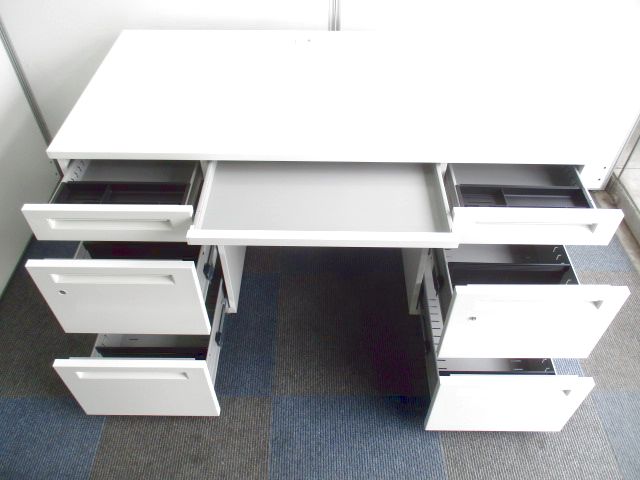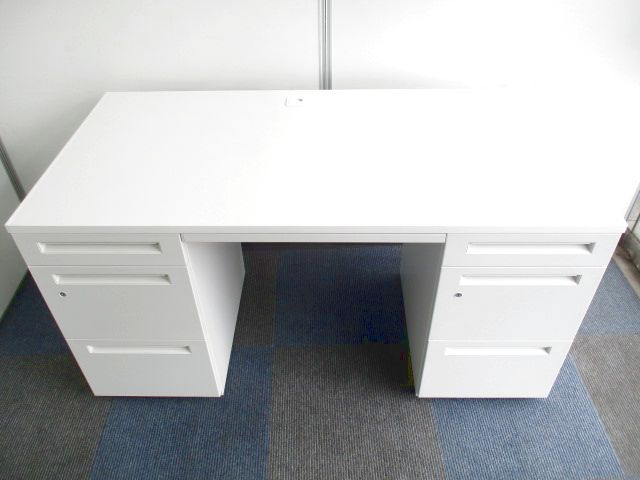 国内メーカー製 W1400mm両袖机 本体ホワイト ※高さ700mm
