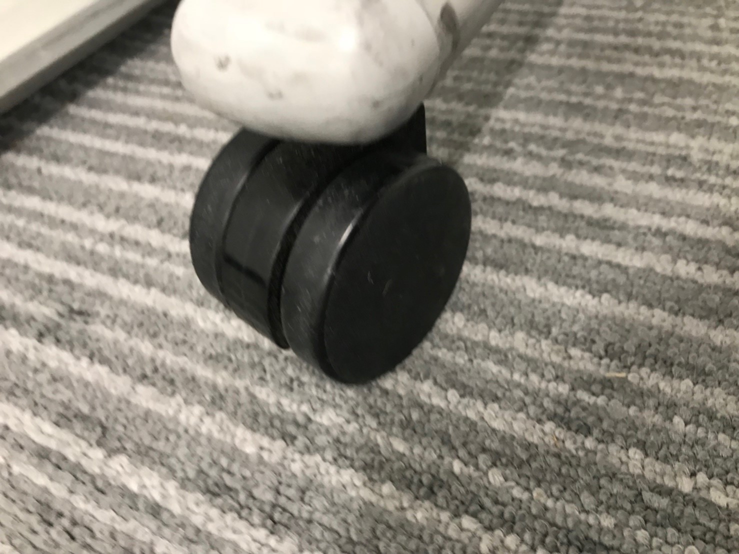 - 目立つ箇所複数あり深い傷・凹みが商品全体にある。(例、板面、受け、サイド部分、脚部にある。)