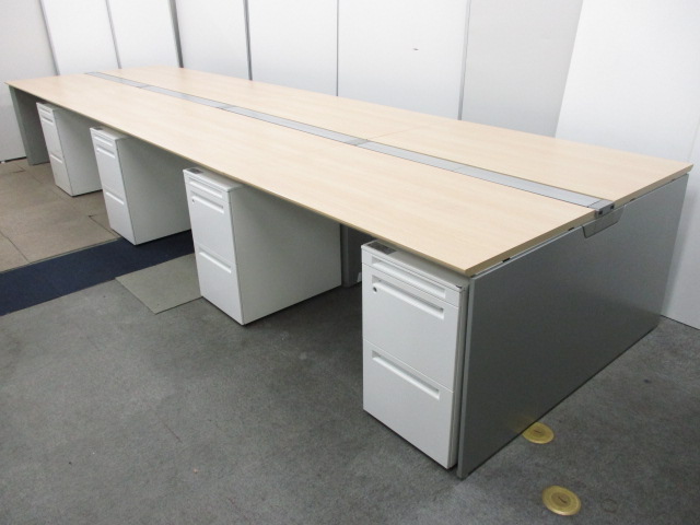 【倉庫在庫品】流行りのフリーアドレスデスク オカムラ プロユニットフリーウェイシリーズ ナチュラルカラー 幅4800㎜ 奥行1400 中古家具 オフィス家具 オフィスバスターズ心斎橋店 起業 入れ替え レイアウト変更 お引っ越し 事務所開設 ※チェアは別売りとなります