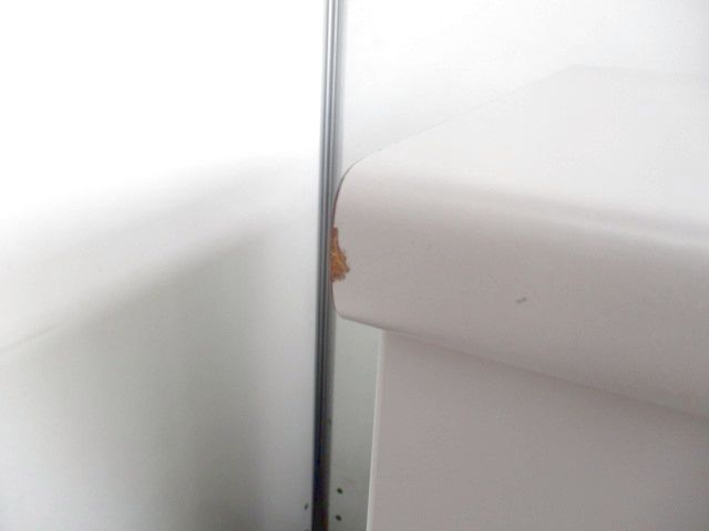 - 一部不具合あり天板歪み、引出開閉不可、アジャスター無し、施錠不可のようにそのカウンターの本来の効用を果たすための機能以外の一部が使用不可な状態。(例、引出が 開閉しづらい等がある。)