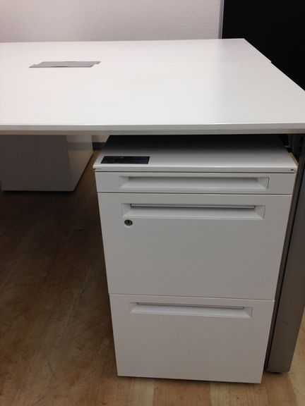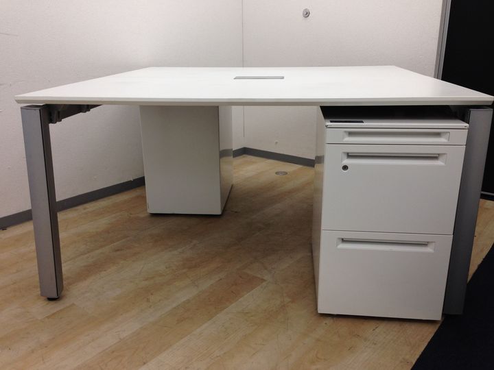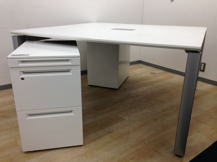 コクヨ製のフリーアドデスクとオカムラ製アドバンスの3段ワゴン
