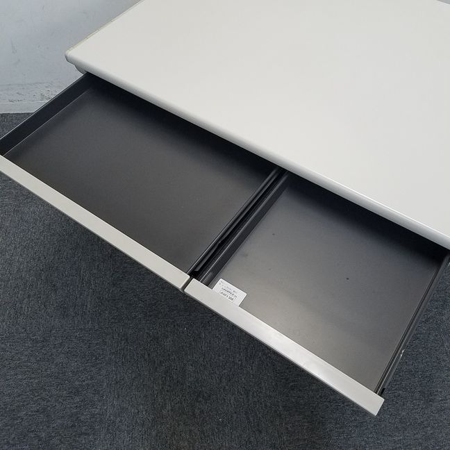 - 袖机のワゴンは、最下段がロング引出しになっており、従来より収納力120%アップ。