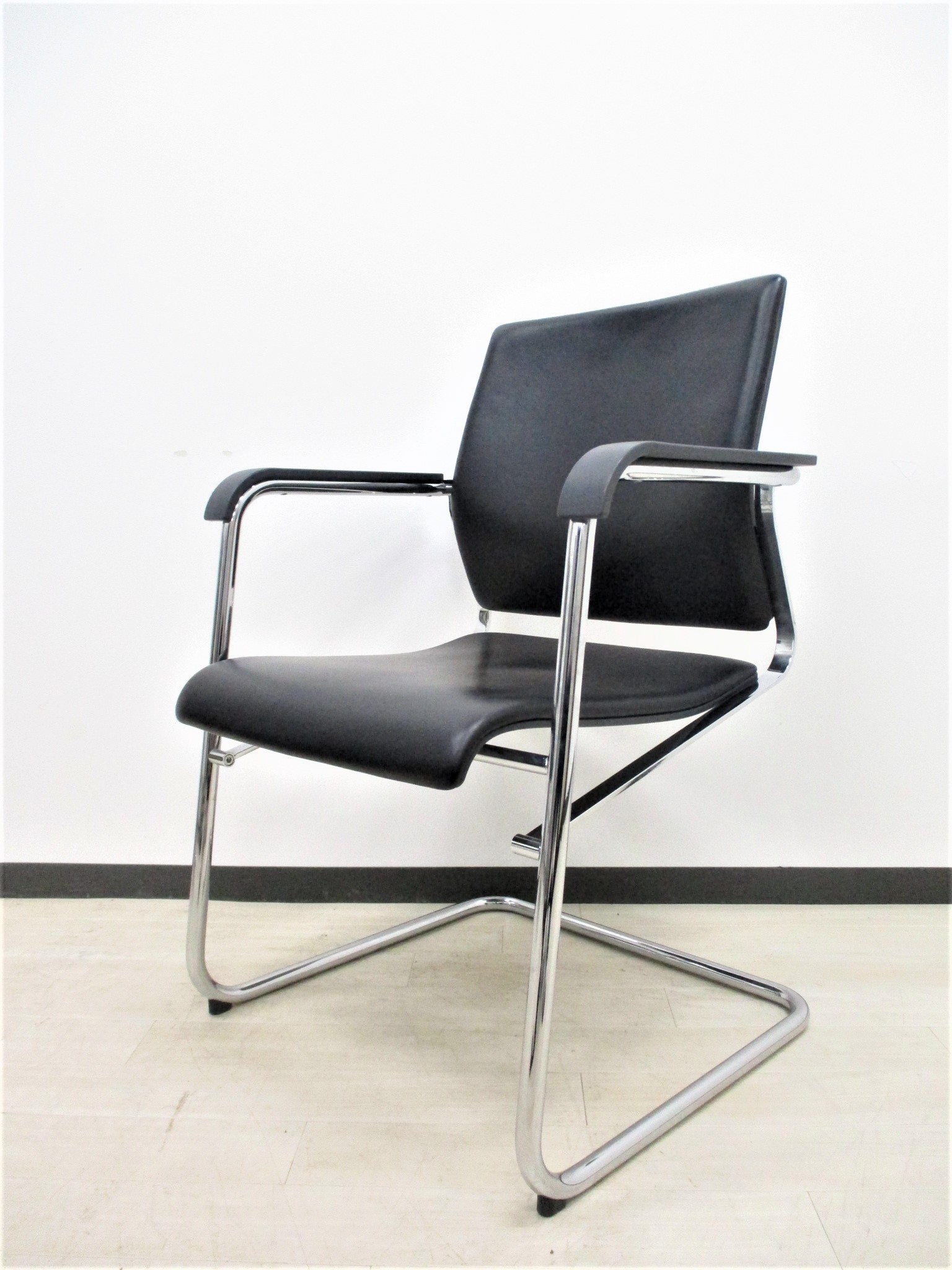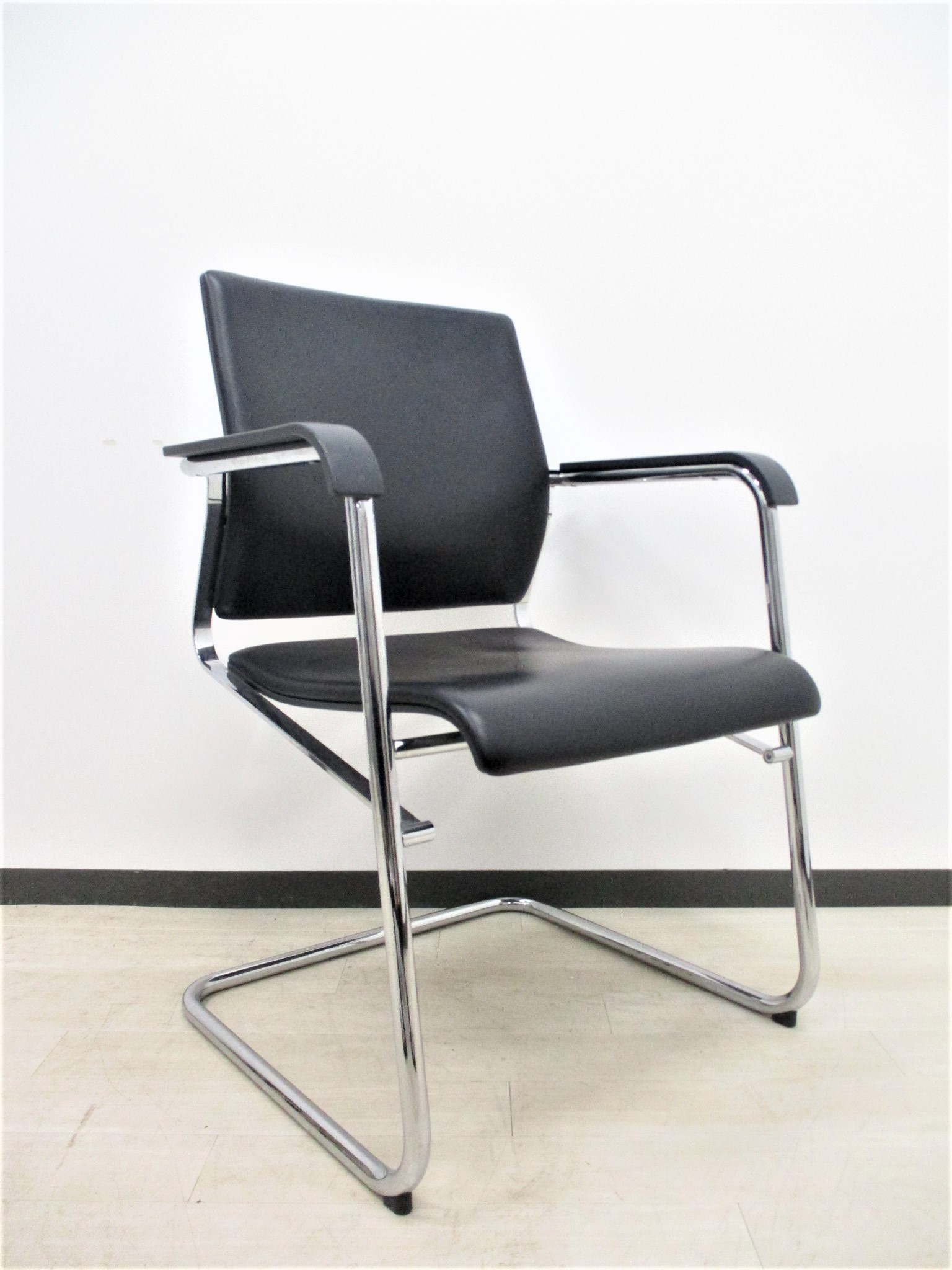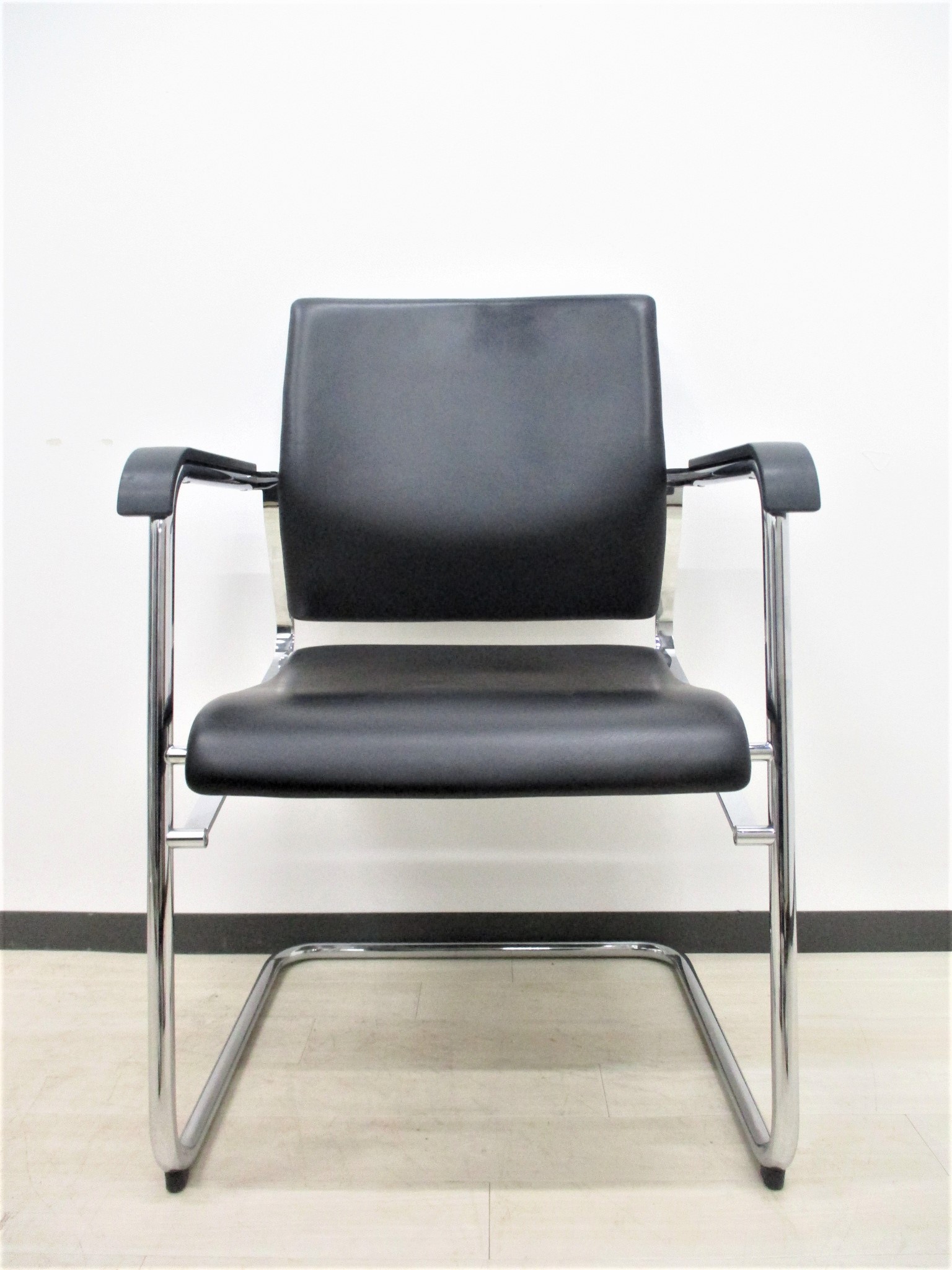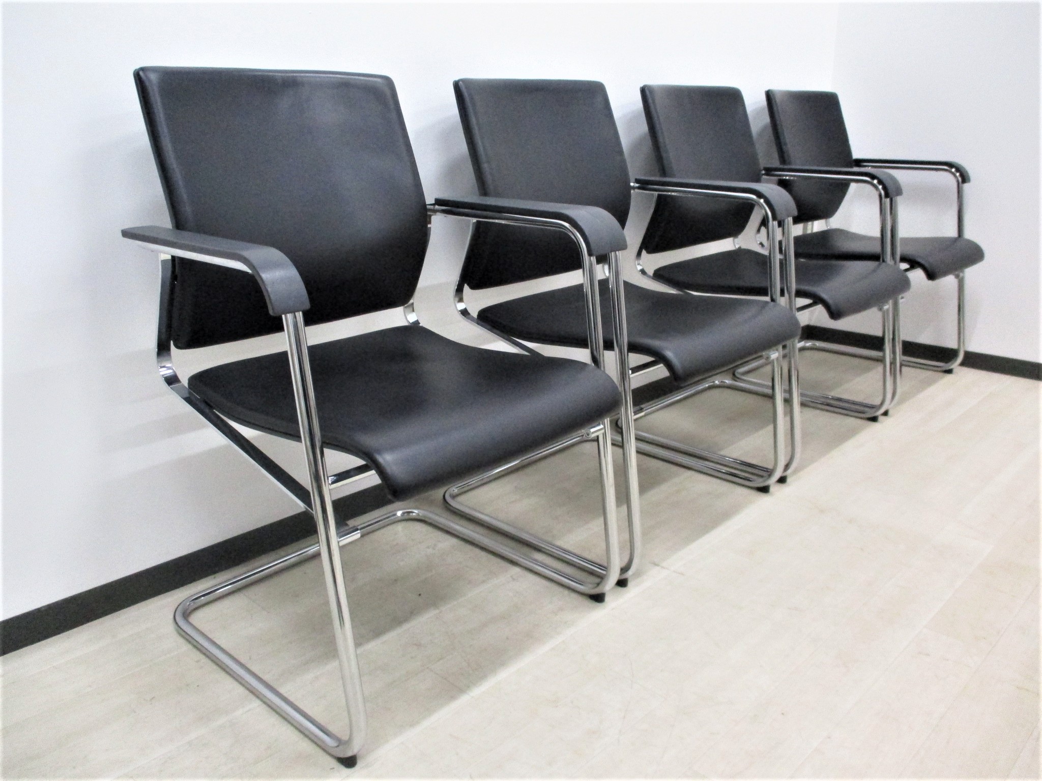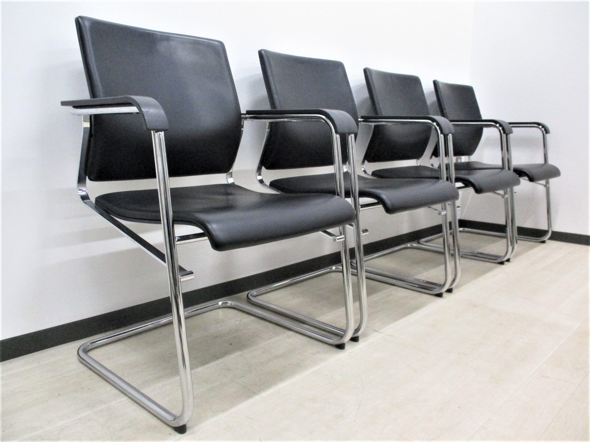 【4脚セットで定価120万のチェア!】オフィスにあるとかなりカッコイイです!!ミドルバックキャンティレバー レザーブラック 74/99- つくば店
