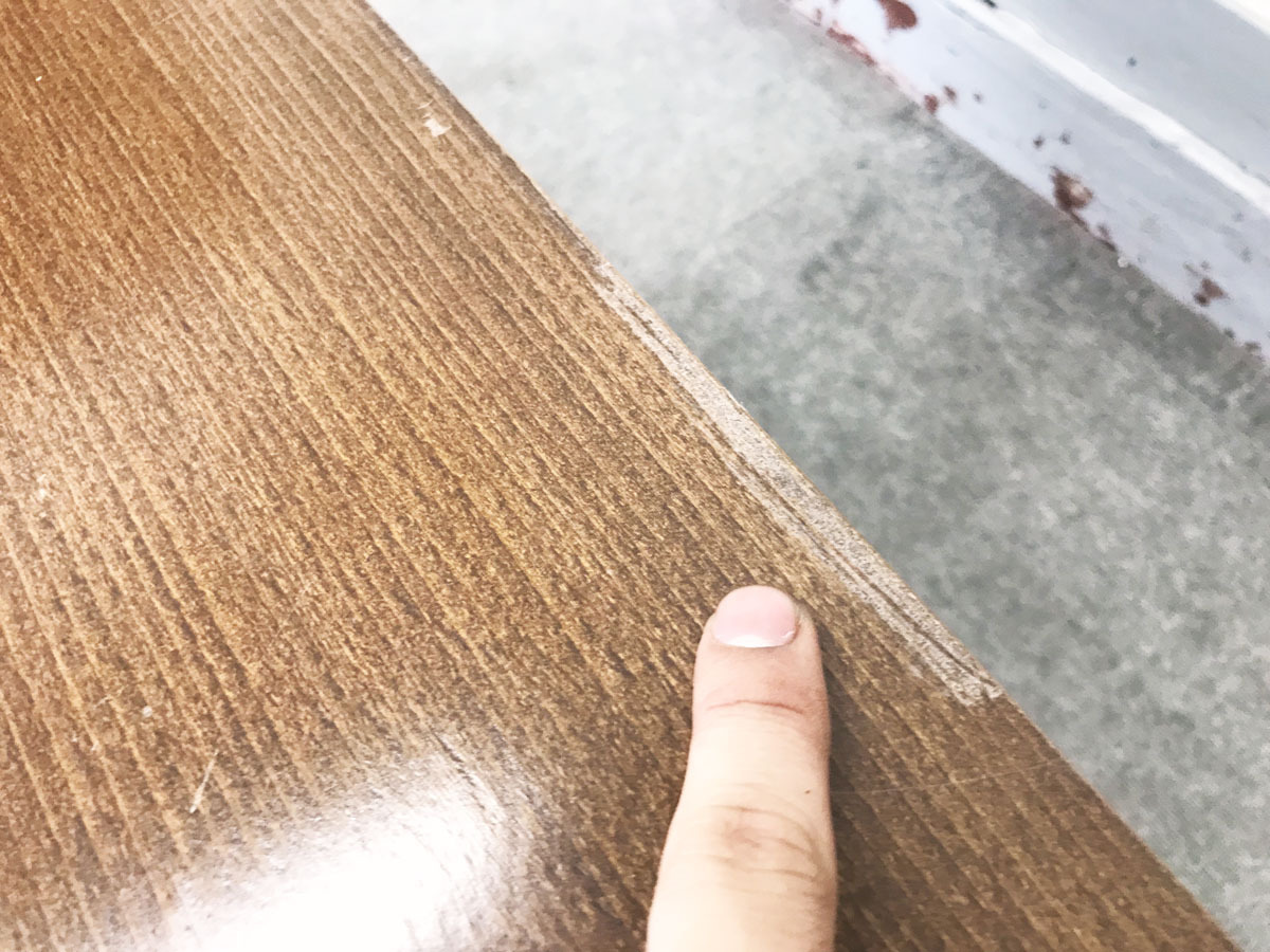 - あり黄ばみ・変色が広い範囲にうっすらある、または濃い黄ばみ・変色が一部ある。(例:三人用ソファ、二人用ソファ、一人用ソファの場合、背もたれ、肘かけ、座面等、 センターテーブルの場合、天板、脚にある。)