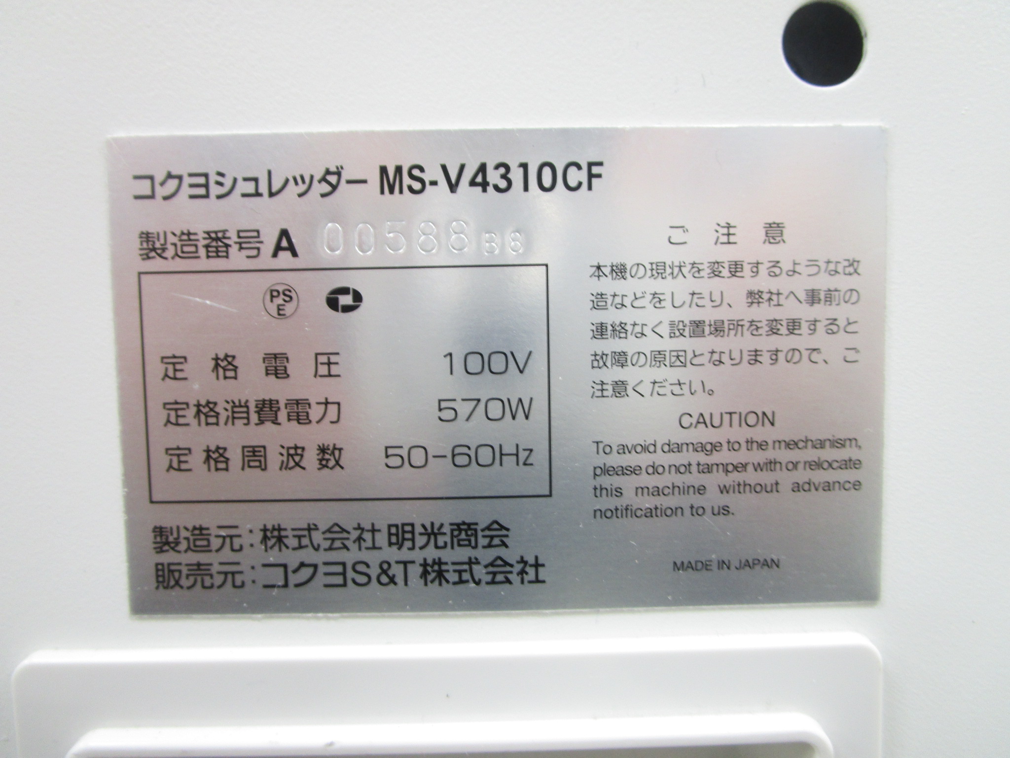【業務用シュレッダー】MS-V4310CF コクヨ 中古シュレッダーでも十分に活躍できます!- 池袋店
