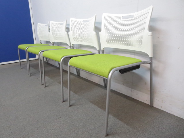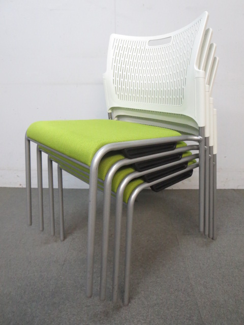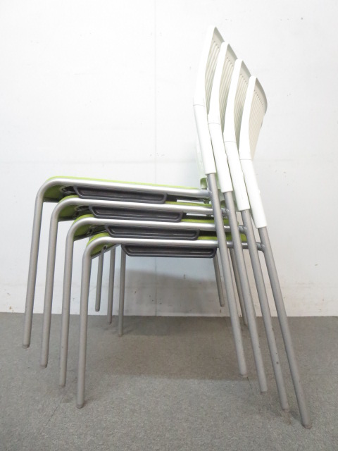 ■オカムラ製 スタッキングチェア4脚セット ■レーテ(RETE)シリーズ イエローグリーン- 川崎店