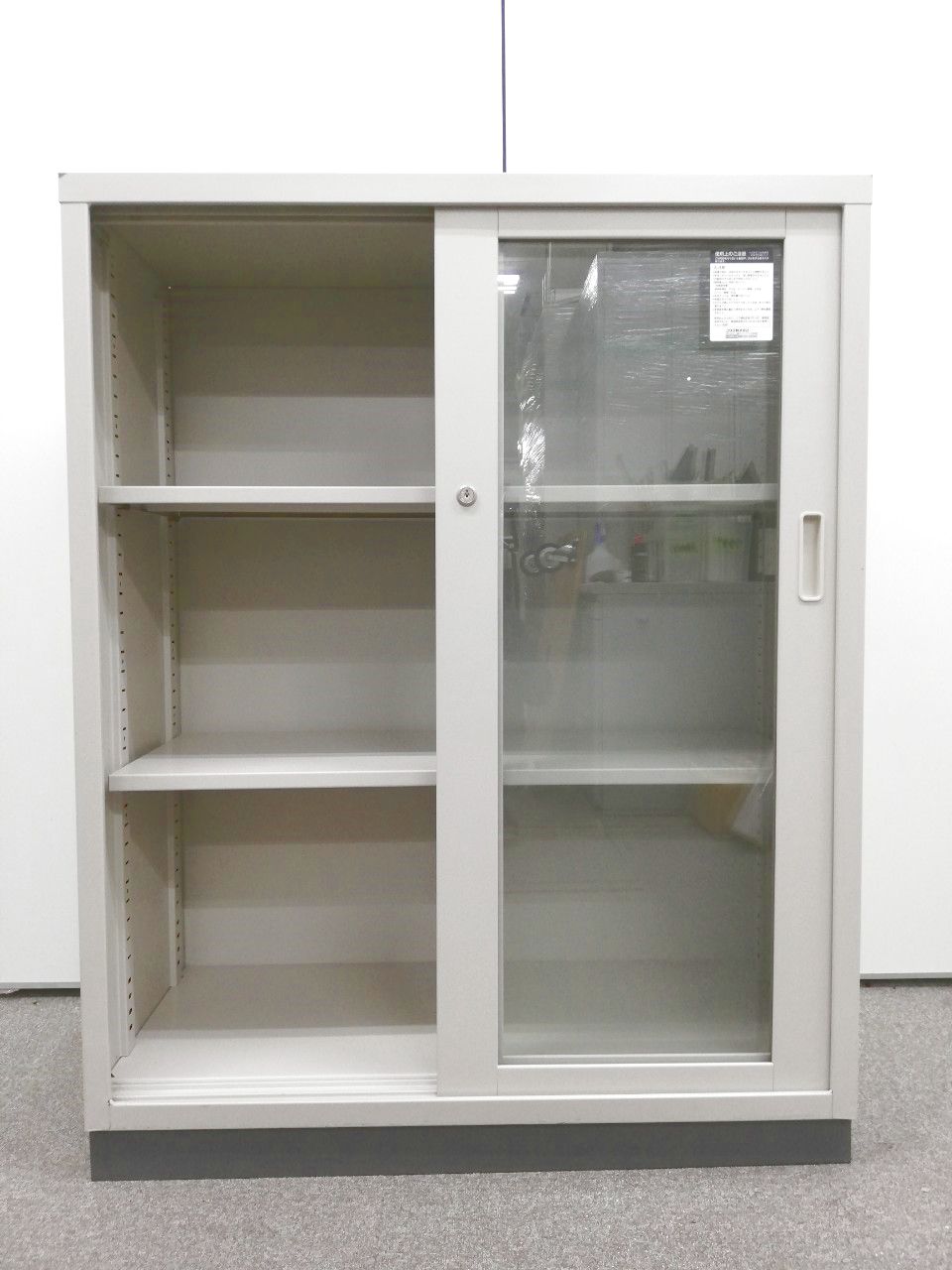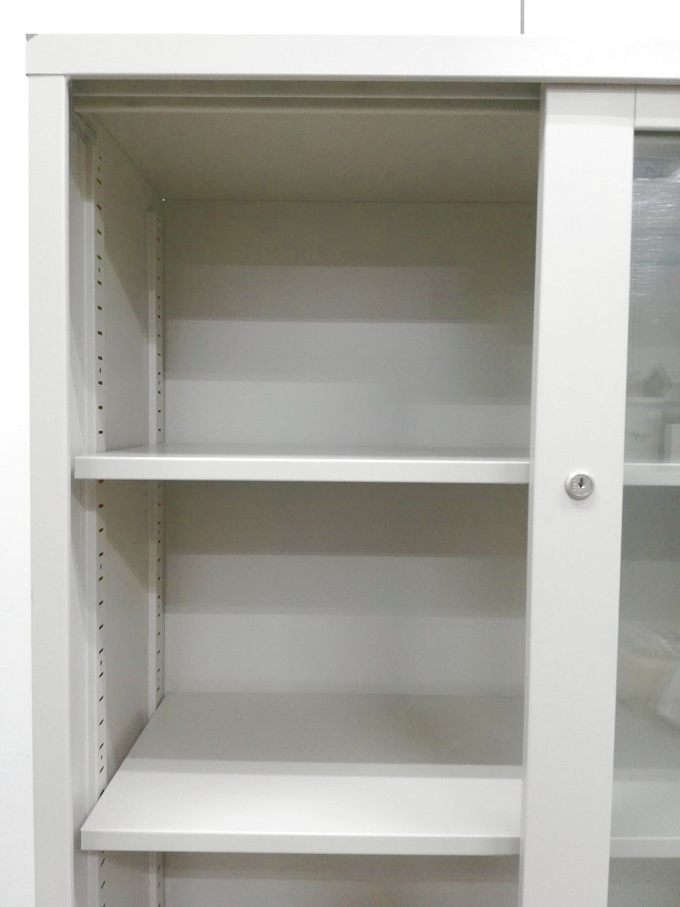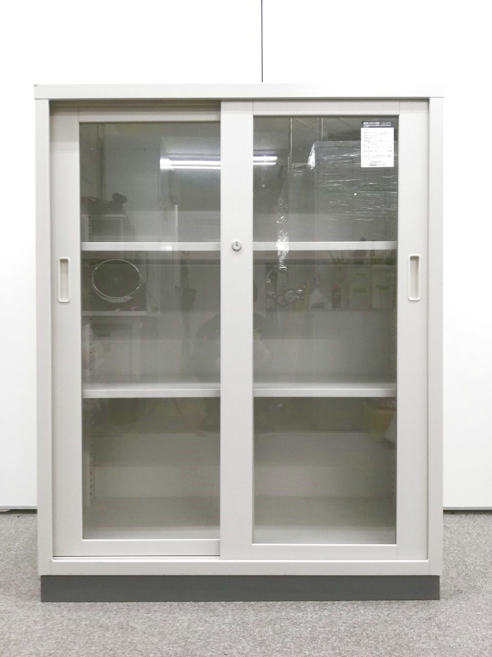 【中身が分かるガラスタイプ!】ドアの開閉にスペースを取らないスライド式の書庫になります。外からでも中の物が分かるガラス式!!- 日本橋店