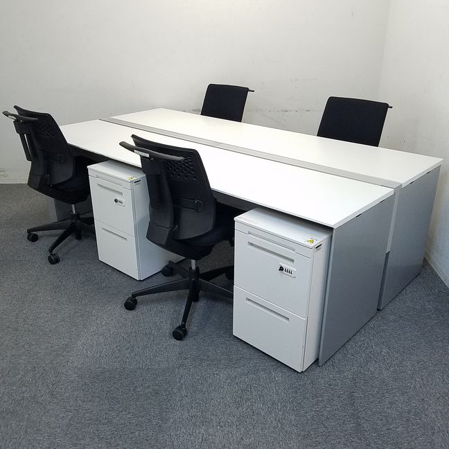 【セット商品】【4名様使用推奨/W2400】【フリーアドレスデスク】【チェアワゴンセット】すぐに仕事が始められるセット商品!!- 京都東寺店