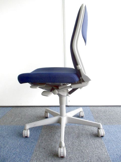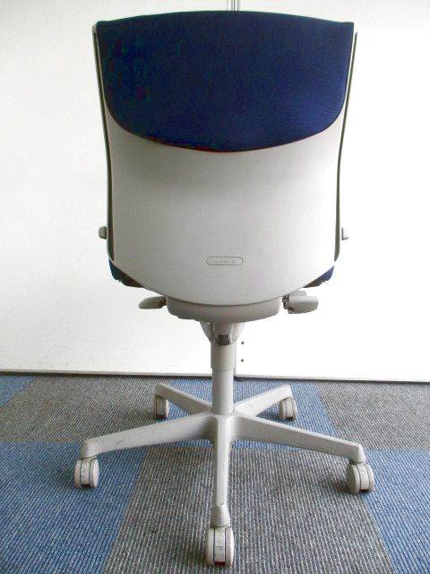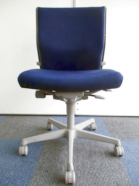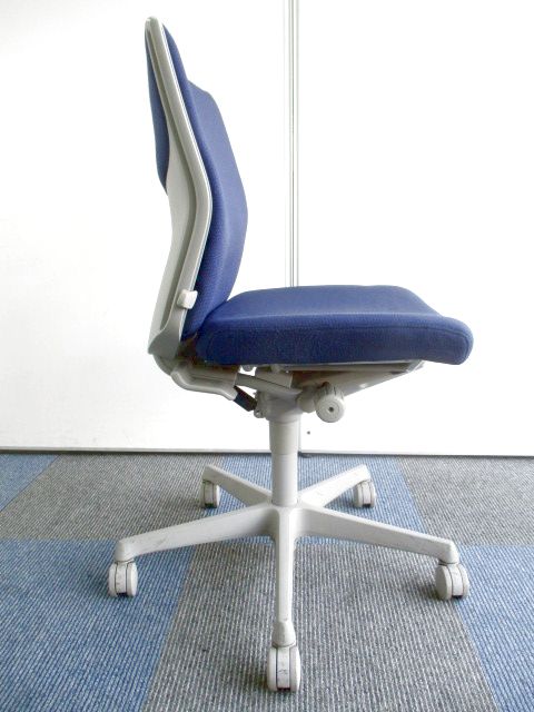 【長時間のデスクワークもランバーが快適にサポート!】■okamura(オカムラ)製 エスクードチェア ローバック 色:ダークブルー 肘無し