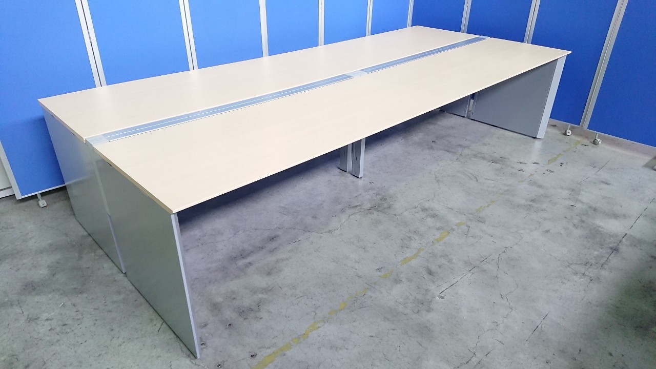 【倉庫在庫品】■4名用デスク■組立簡単!搬入もラクラク■コクヨワークヴィスタ■ナチュラル×ホワイト W3200×D1400 オフィスバスターズ 梅田本店