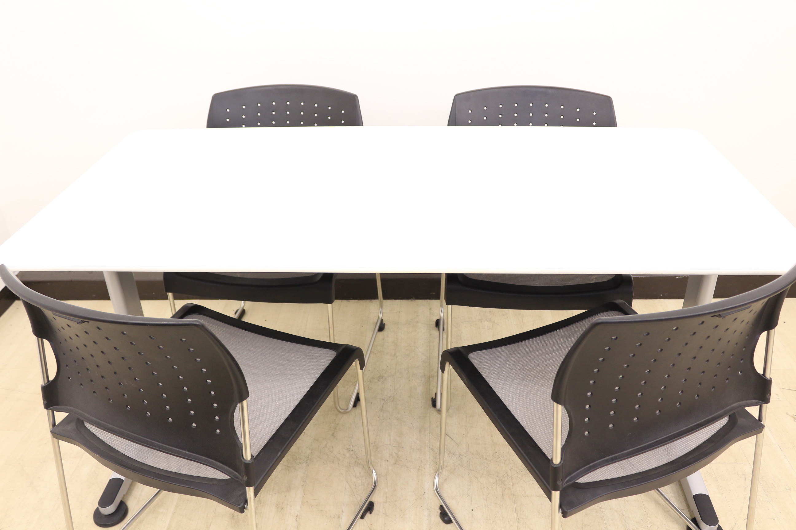【ホワイトカラーのスタイリッシュミーティングテーブル!】■コクヨ(KOKUYO)製 アリーナシリーズ ミーティングテーブル W1500×D740㎜ ■4本脚 ■天板:ホワイト