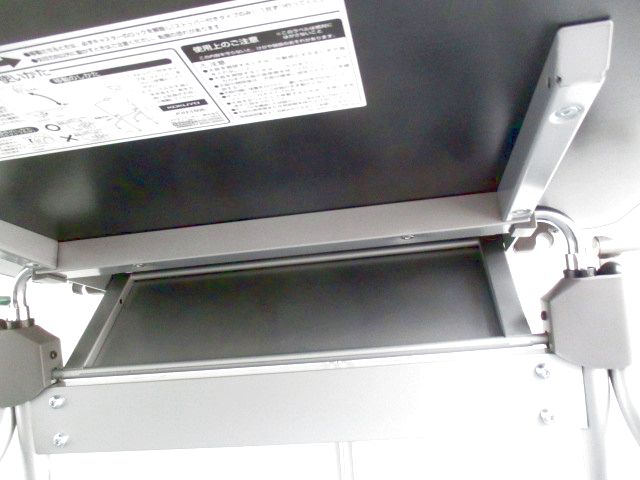 - 一部不具合あり天板歪み、アジャスター無し、キャスター使用不可ようなそのテーブルの本来の効用を果たすための機能以外の一部が使用不可な状態。(例、キャスターロッ ク機能使用不可、棚板無し等がある。)